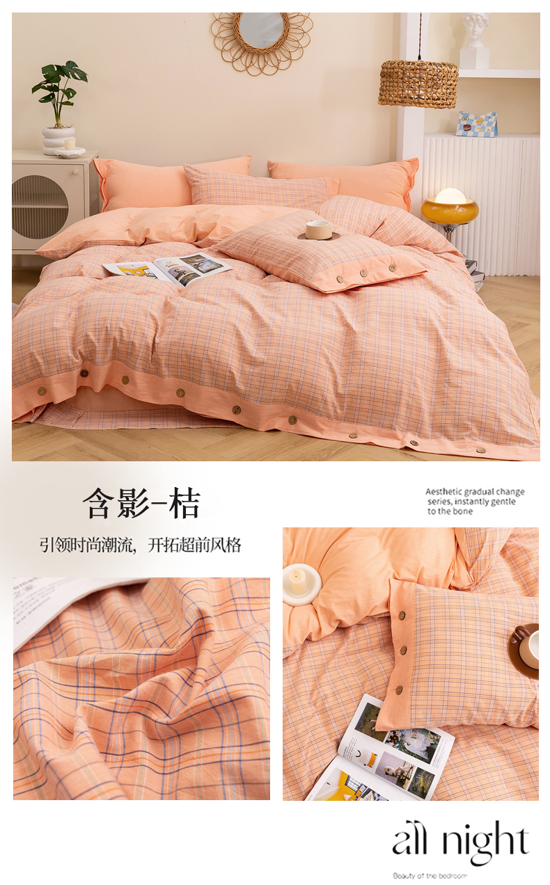 (总)琉宿家纺 2025新款纽扣款水洗棉四件套,爱语灰,波托兰,迪亚红,梵克咖,含影桔,回音桔,玛格灰,玛格蓝,梦漫灰,妙恋粉,千颂咖,舒恋咖,悠悠咖,云初绿