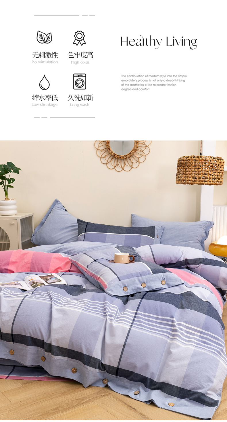 商品名称:琉宿家纺 2025新款纽扣款水洗棉四件套 玛格灰