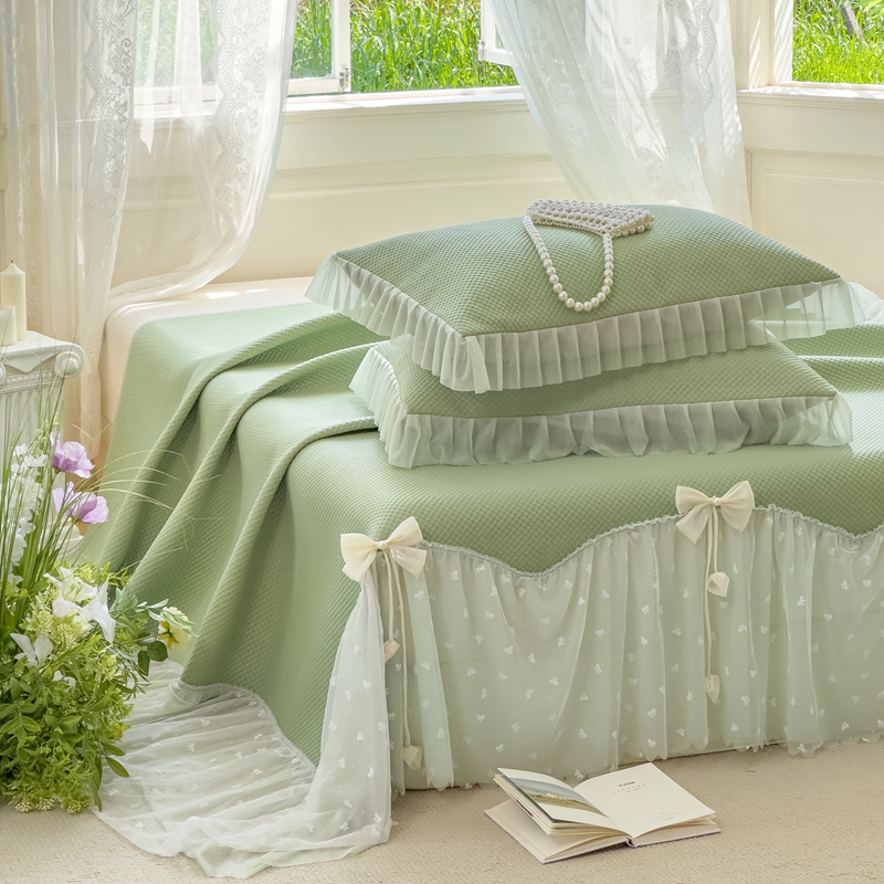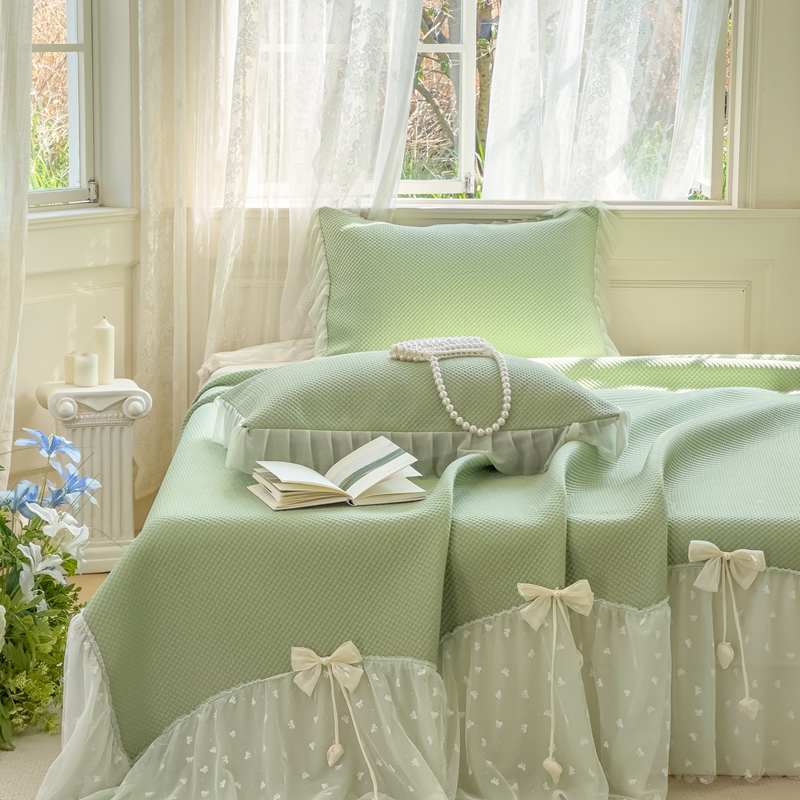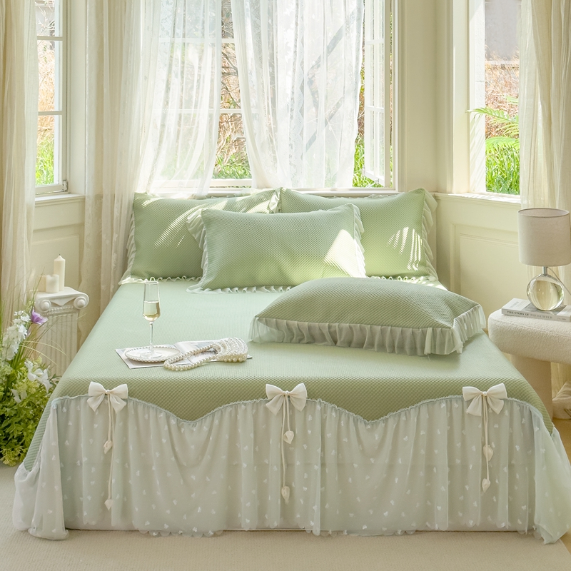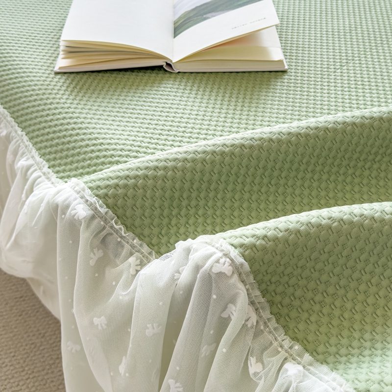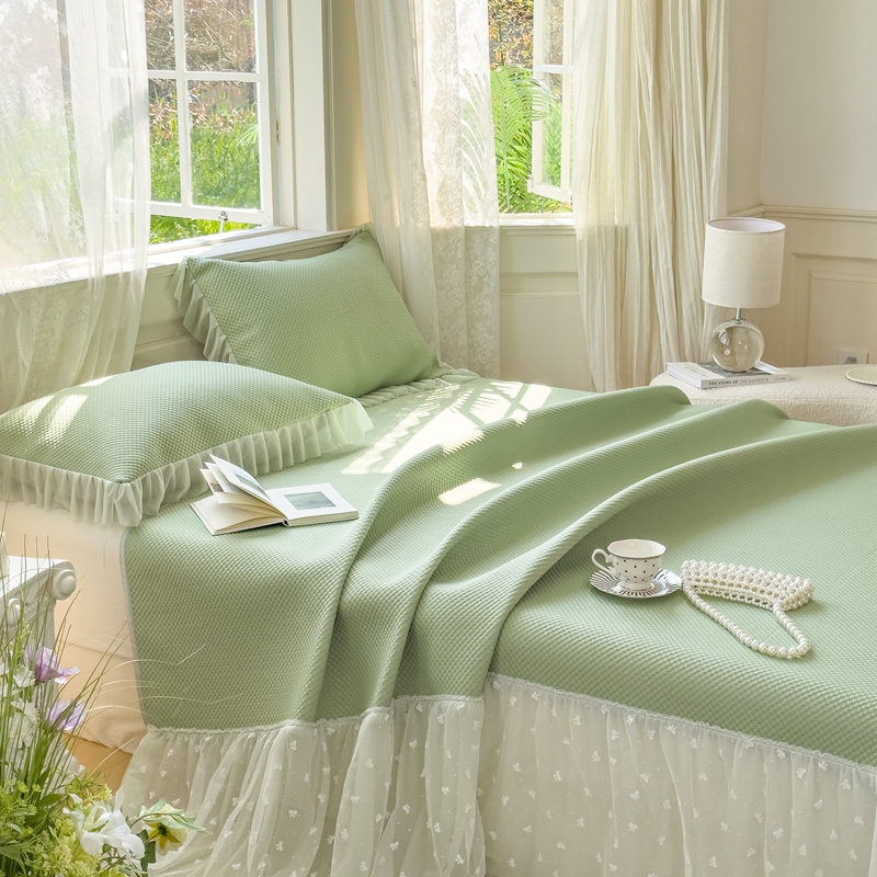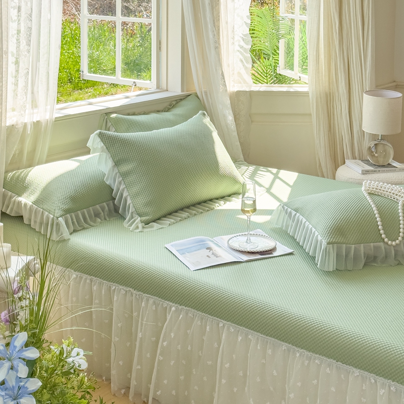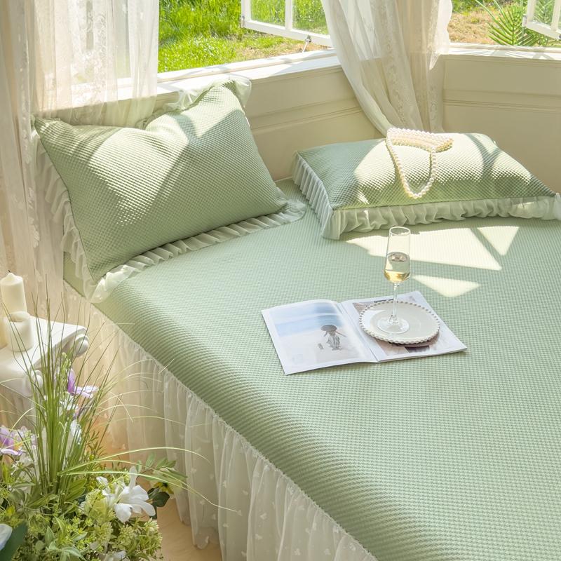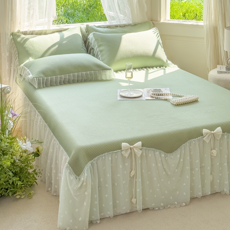 恋尚羽家纺 2025PE高分子复合软凉席豆豆席大床裙三件套 绿色