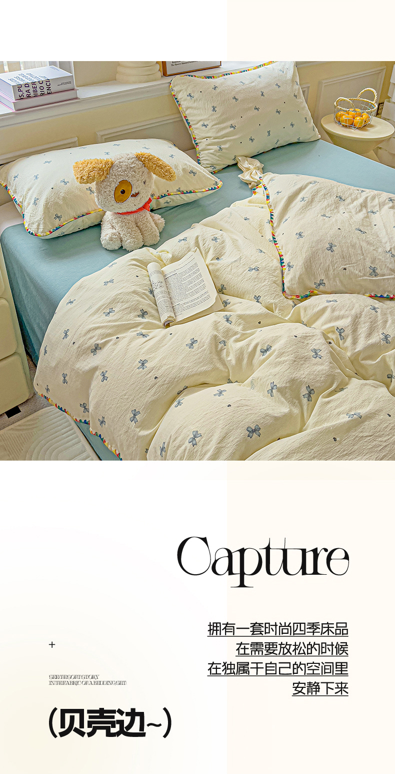 当前位置: 91家纺网 > 商品网购 > 床品套件 > 四件套 > 双层纱四件套 > Mata蔓塔家 2025春夏新款云感针织双层纱彩色贝壳边四件套 兔子的欢喜