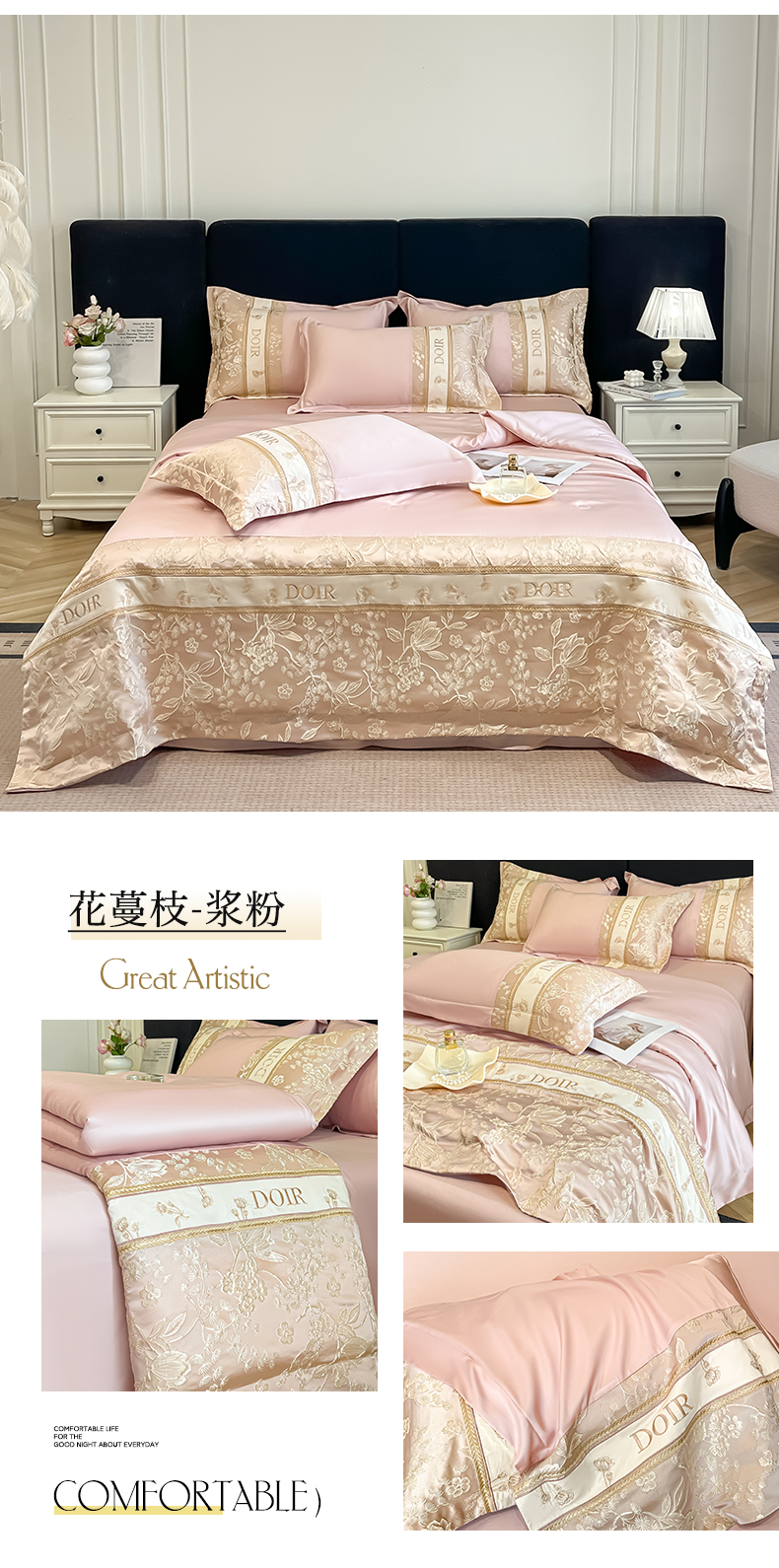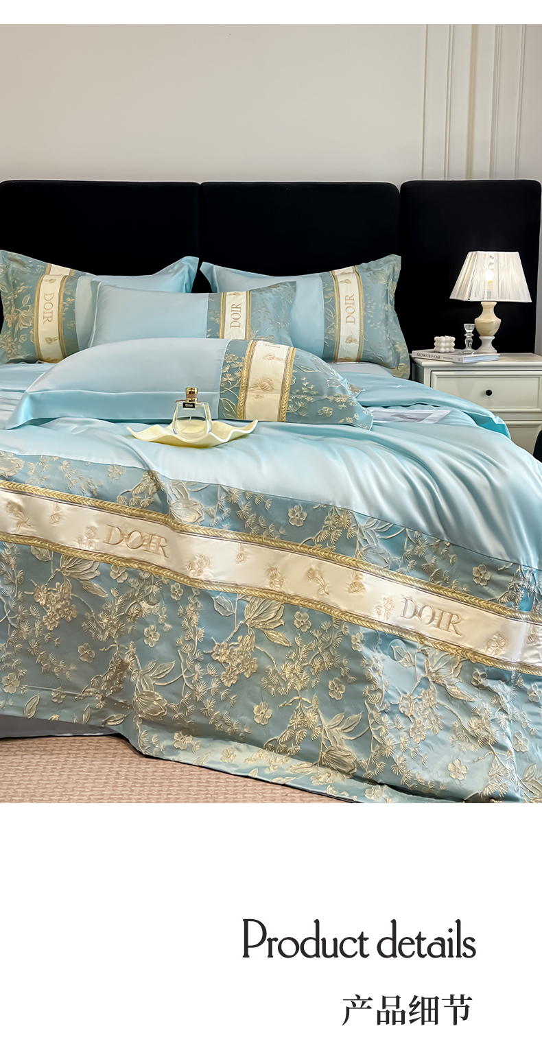• 91家纺网 家纺一手货源 找家纺 帝王家纺 2025新款浮雕刺绣水洗天丝真丝夏被四件套冰丝三件套夏季直播 花蔓枝—粉