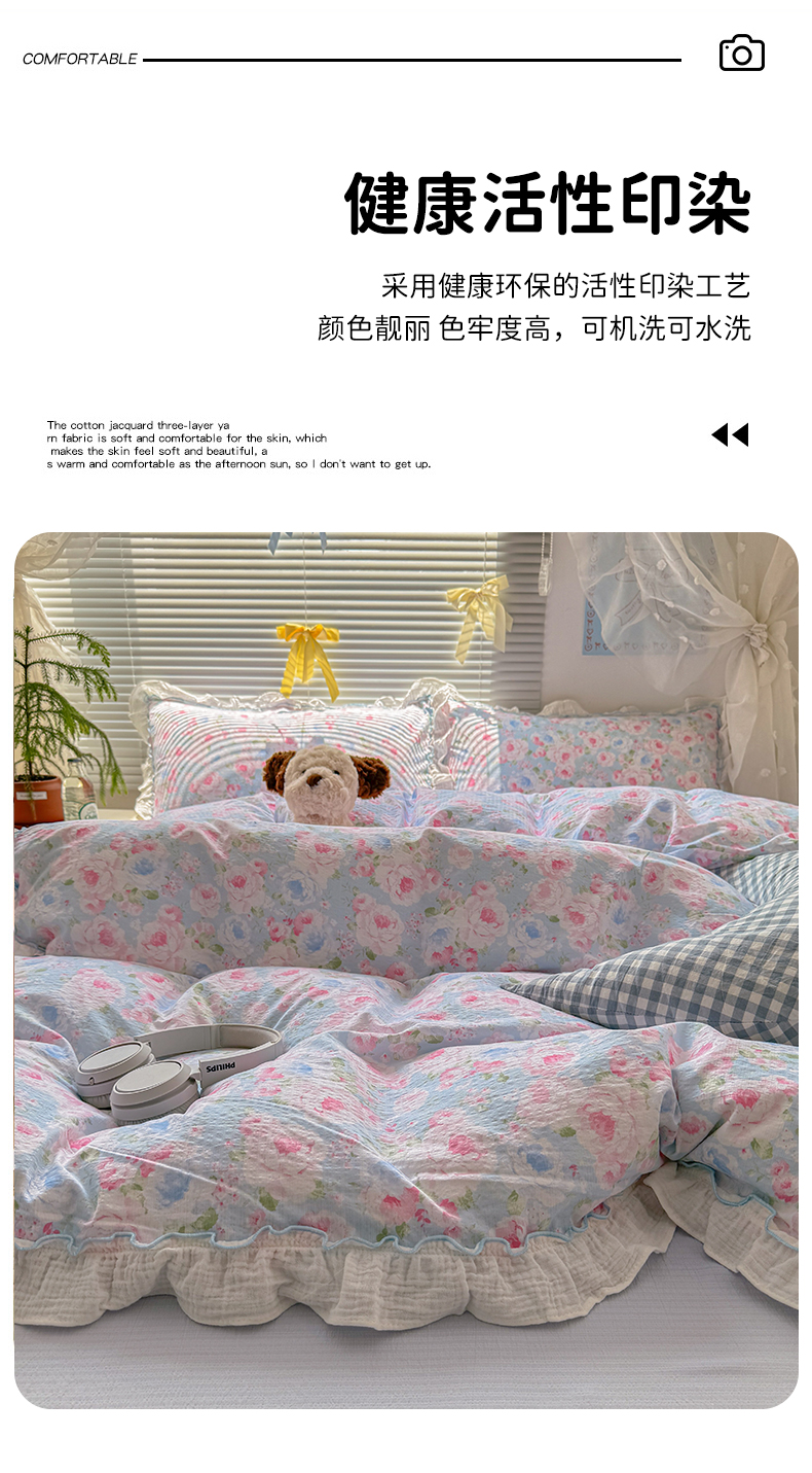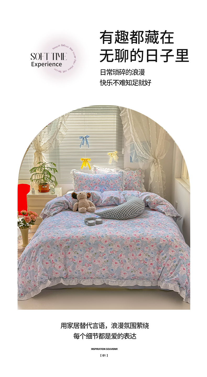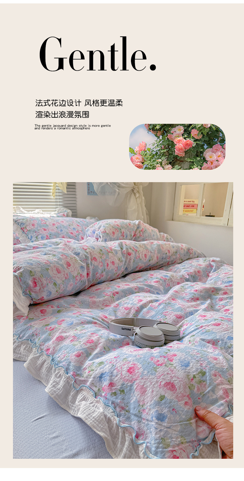 当前位置: 91家纺网 > 商品网购 > 床品套件 > 四件套 > 提花四件套 > 繁花家居 2025新款云感棉提花学生季超温柔小花边四件套 南笙假日