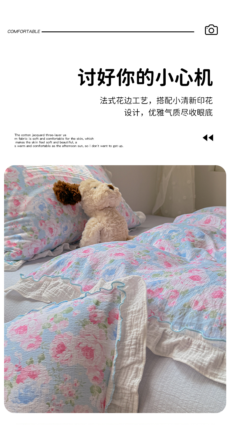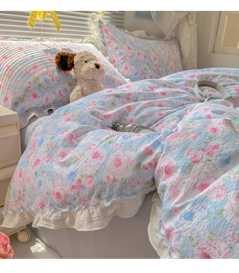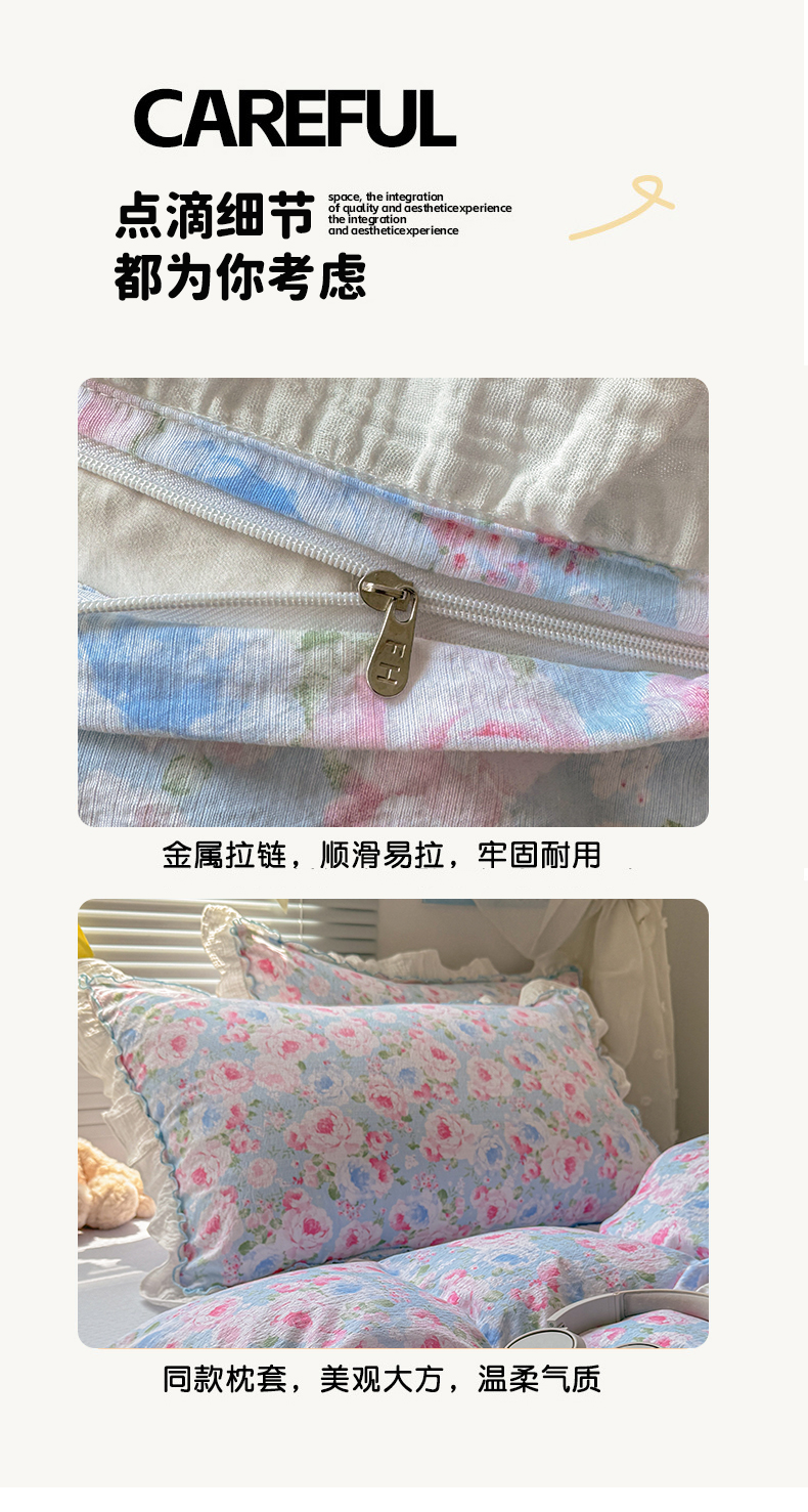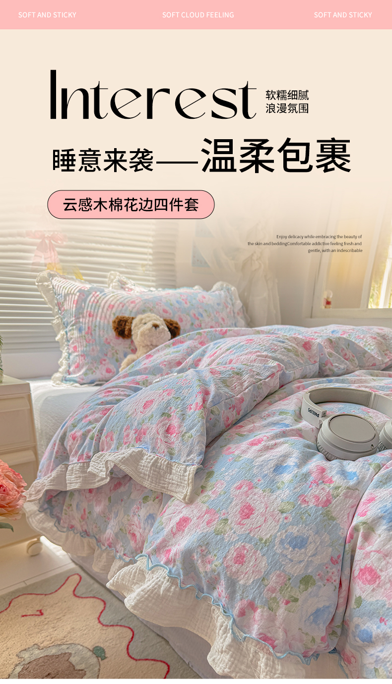 当前位置: 91家纺网 > 商品网购 > 床品套件 > 四件套 > 提花四件套 > 繁花家居 2025新款云感棉提花学生季超温柔小花边四件套 南笙假日