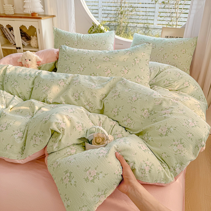 (总)壹号库家纺 2025新款水洗皱皱纱四件套-简单款,白茶,兔巴巴,十里桃花,彩虹糖,梦露,无印兰格,丽莎,蕾丝小兔,甜茶,幸福里,快乐小象,西高地,豆蔻,草莓方糖,kiki猫,百福(兰),豹富-兰,芝士奶酪,春风里,豹富-粉,木兮绿