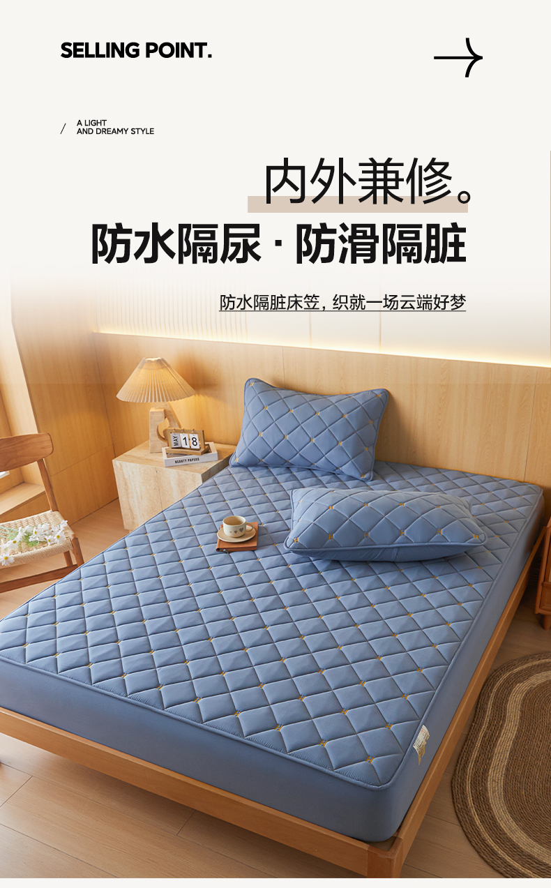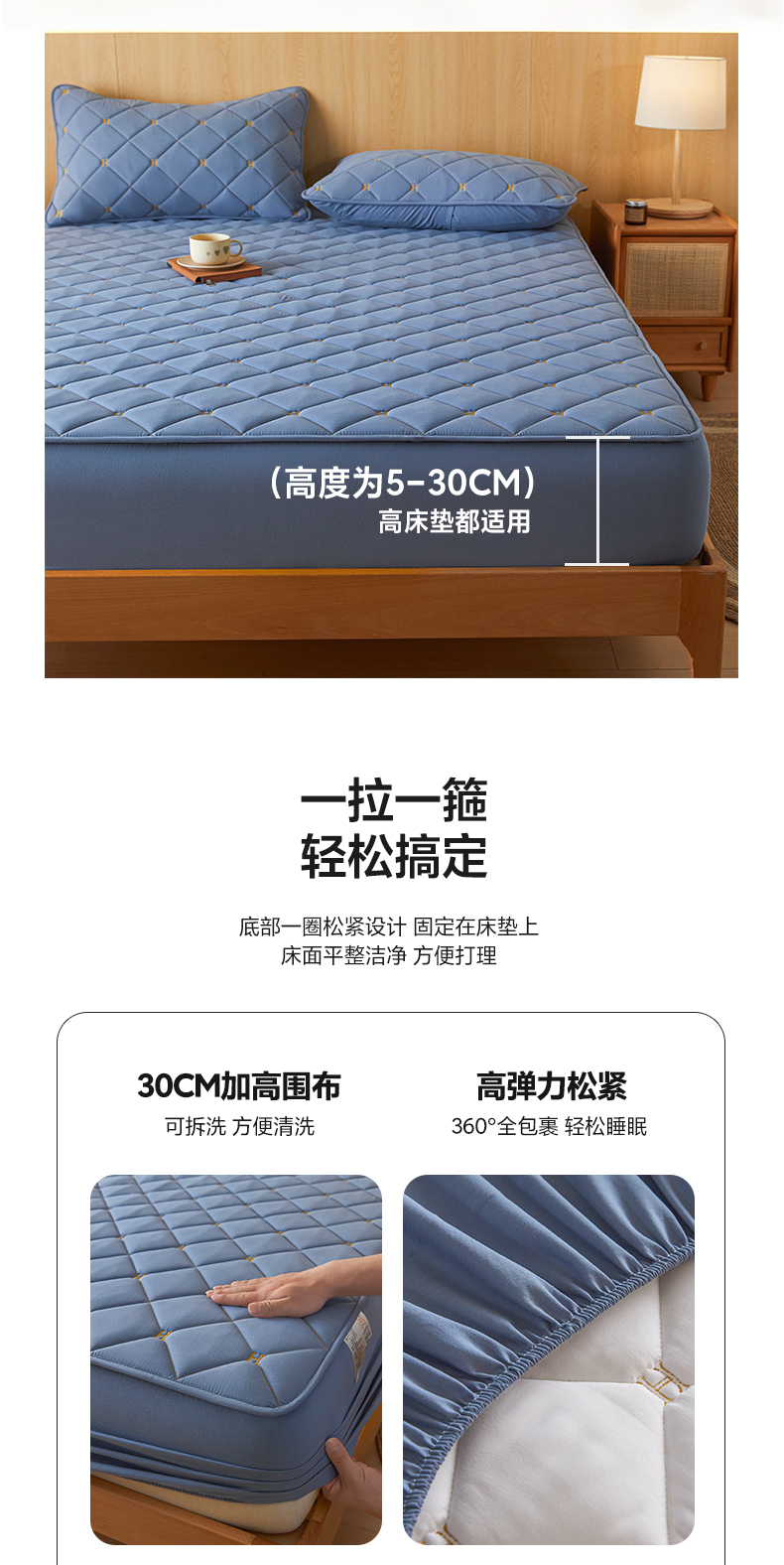 • 91家纺网 家纺一手货源 找家纺 芬晴家纺 2025新款A类母婴全棉H水洗棉床笠 H-雾蓝