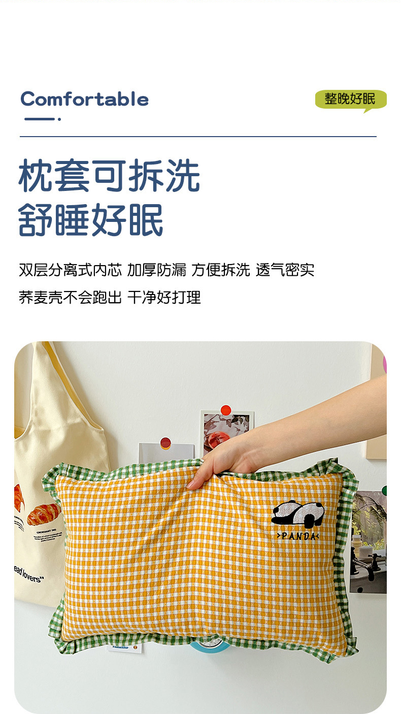 当前位置: 91家纺网 > 商品网购 > 枕头/枕芯/保健枕/颈椎枕 > 梦莱家纺 2025春夏新款全棉双拼刺绣荞麦壳枕头pp棉枕芯 小熊猫-香草绿 35x55cm枕套加荞麦壳内芯
