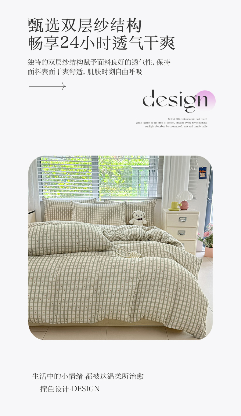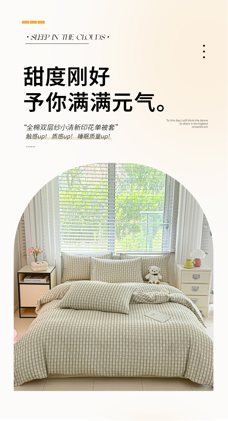 • 91家纺网 家纺一手货源 找家纺 芙绣家纺 2025新款A类全棉双层纱小清新印花单被套学生单被套单枕套 甜心格格