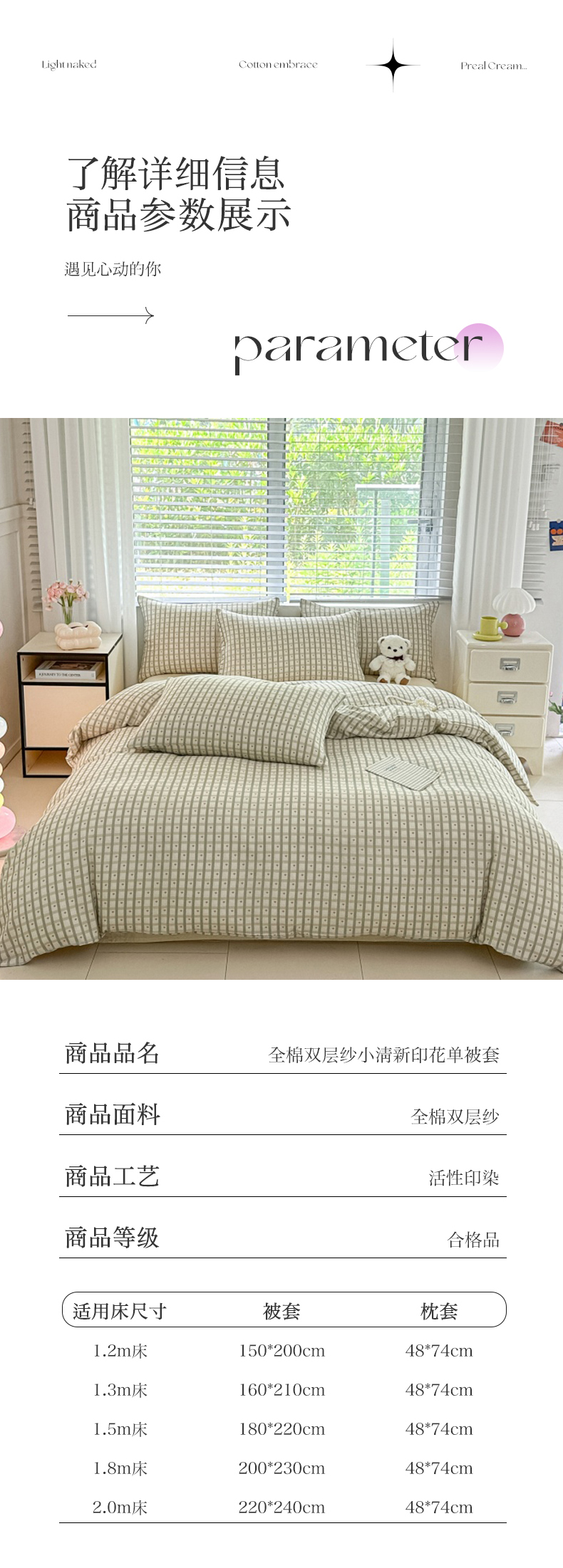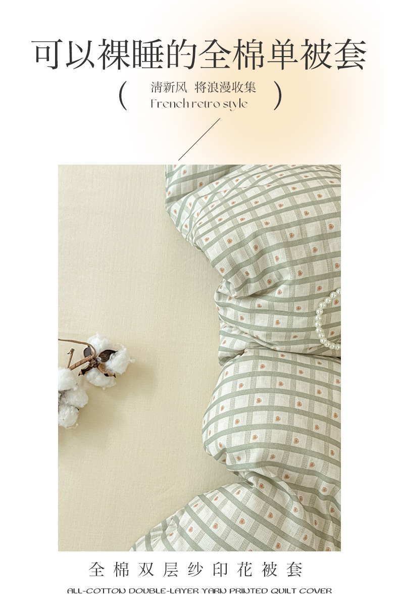 当前位置: 91家纺网 > 商品网购 > 床上用品 > 被套 > 芙绣家纺 2025新款A类全棉双层纱小清新印花单被套学生单被套单枕套 甜心格格