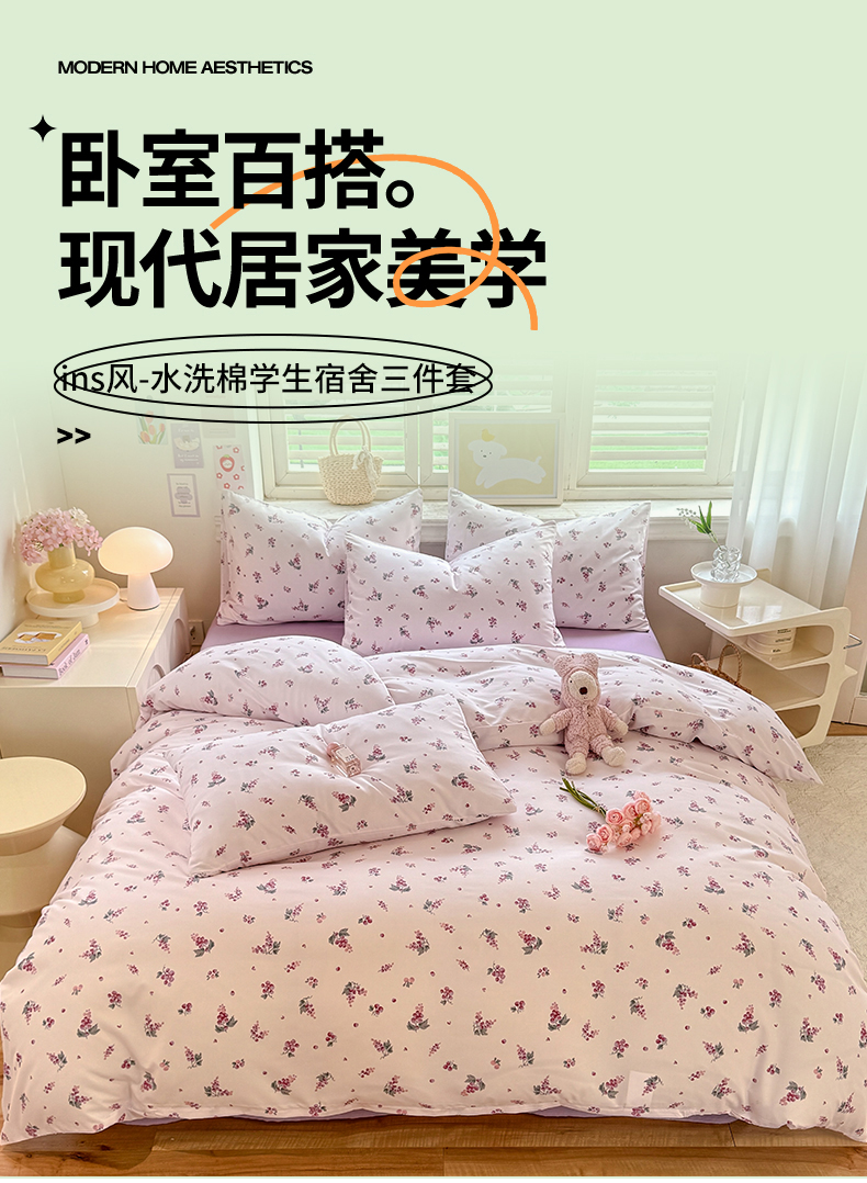 当前位置: 91家纺网 > 商品网购 > 床品套件 > 三件套 > 多品家纺 2025新款ins风水洗棉学生宿舍三件套 紫葡萄