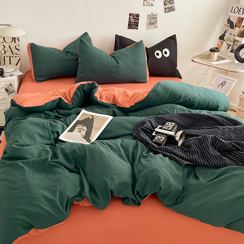 当前位置: 91家纺网 > 商品网购 > 床品套件 > 四件套 > 普通磨毛四件套 > 优尚佳生活馆 2025新款ins风超柔褶皱亲肤磨毛水洗棉四件套双拼系列(风格一) 宝绿橙