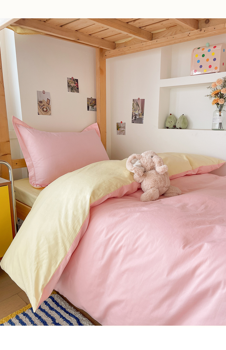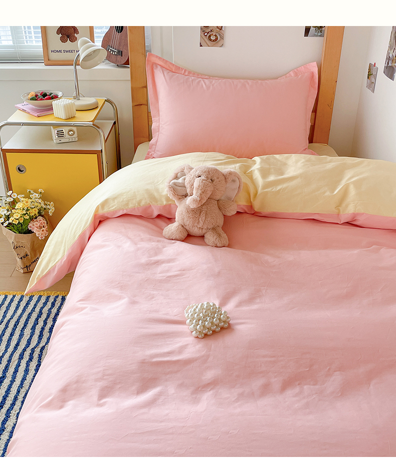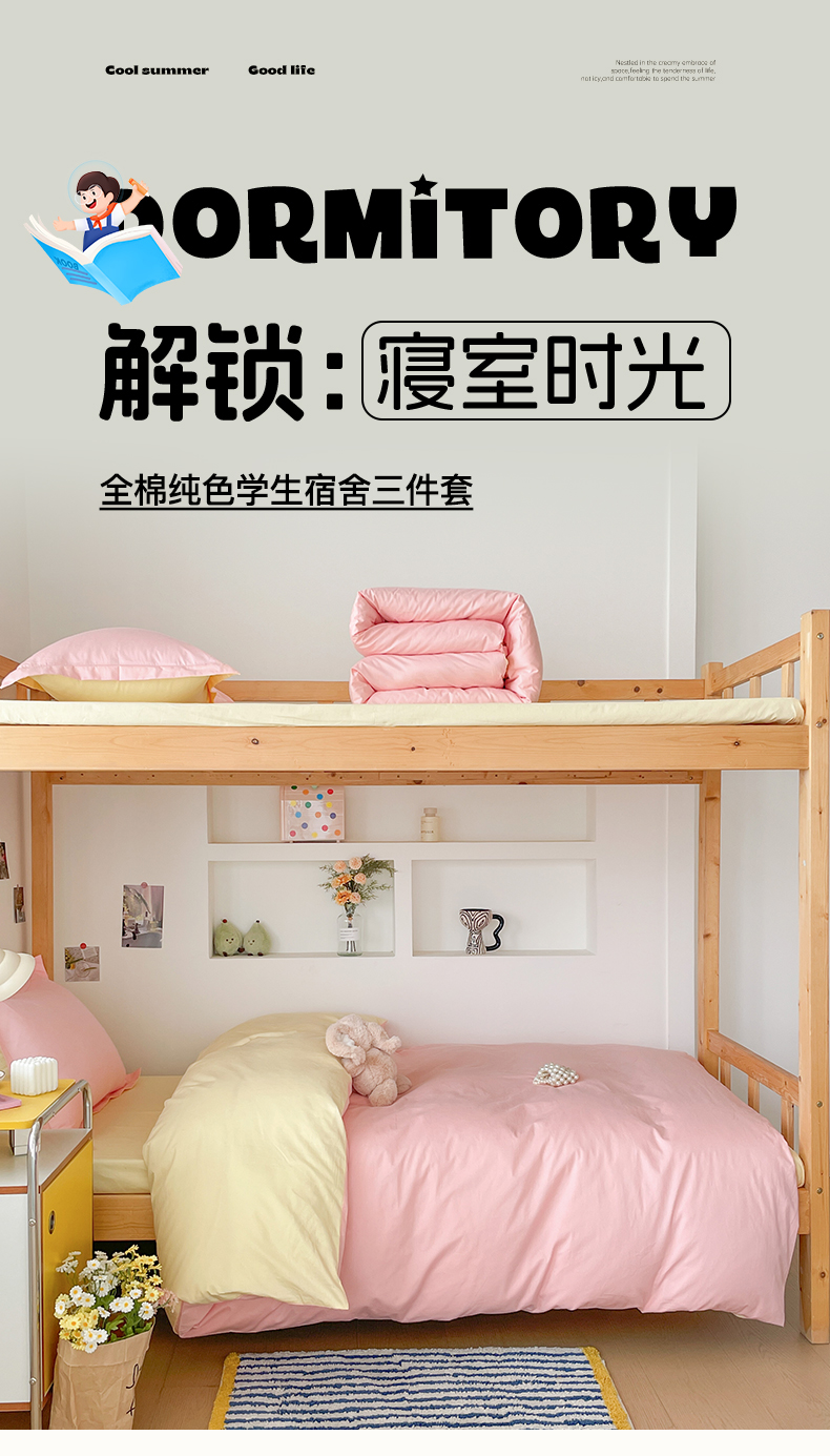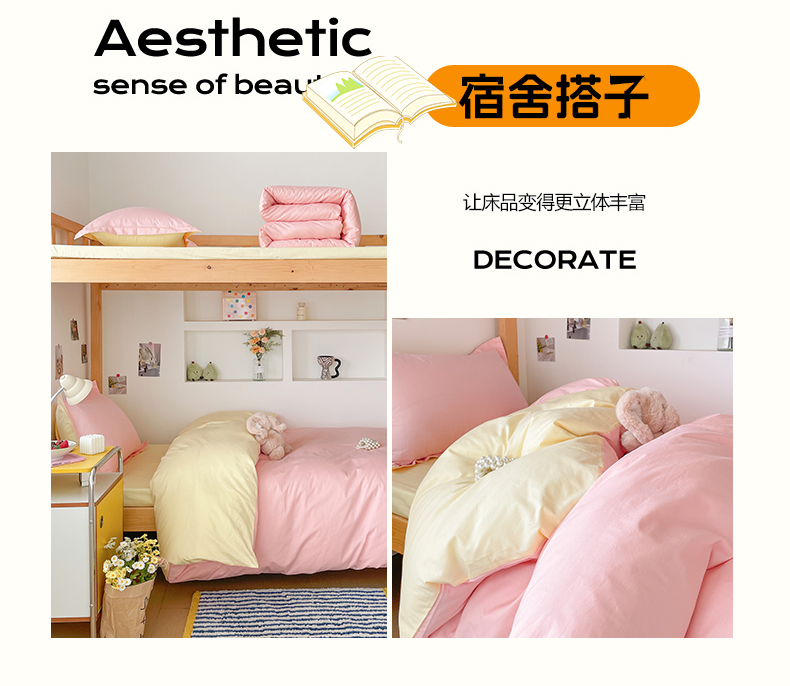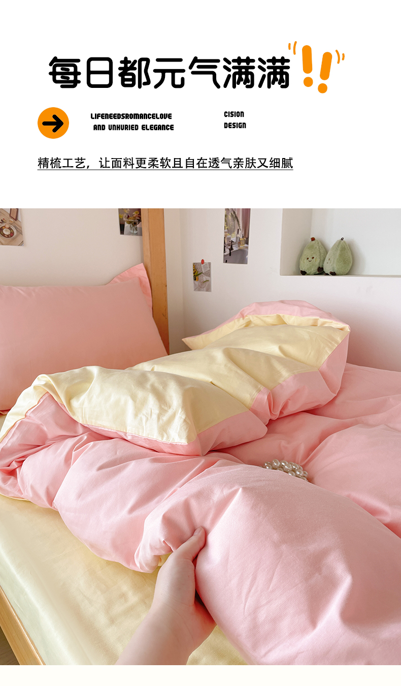 恩泽家纺 2025新款全棉双拼学生宿舍三件套 玉色+鹅黄