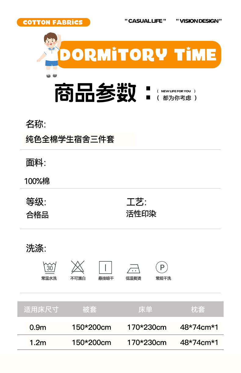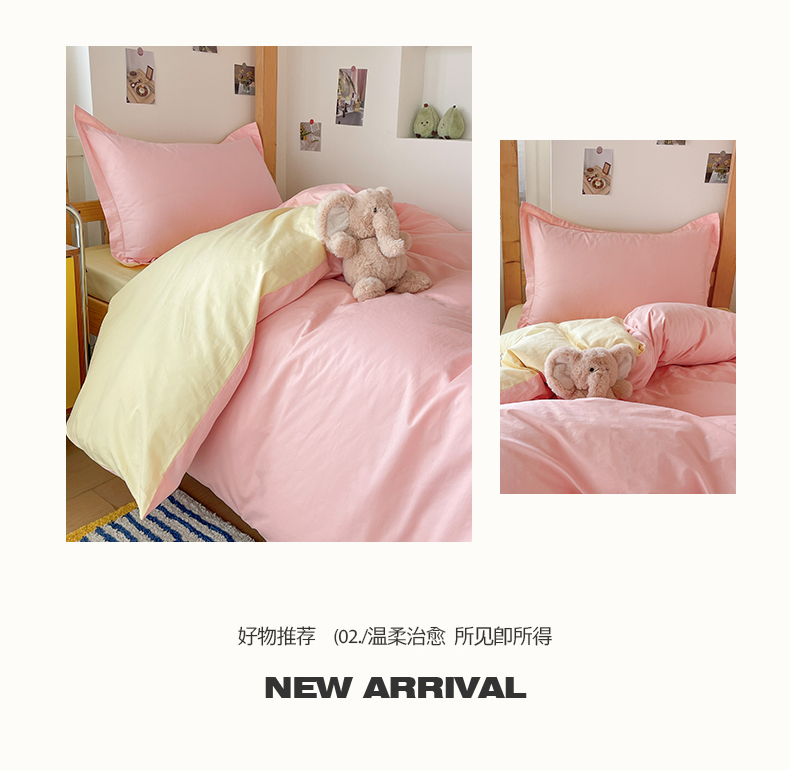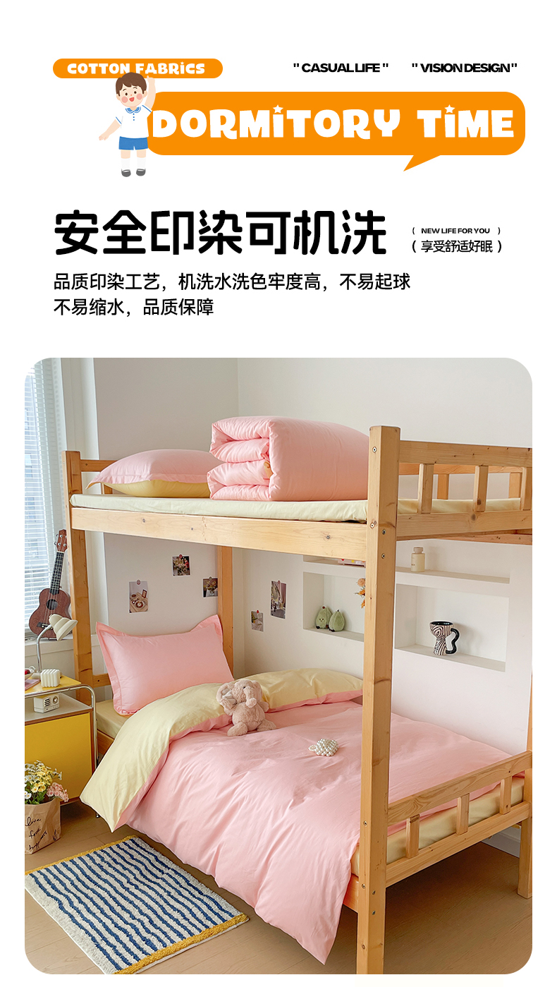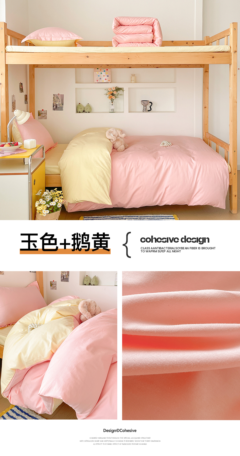 商品名称:恩泽家纺 2025新款全棉双拼学生宿舍三件套 玉色+鹅黄