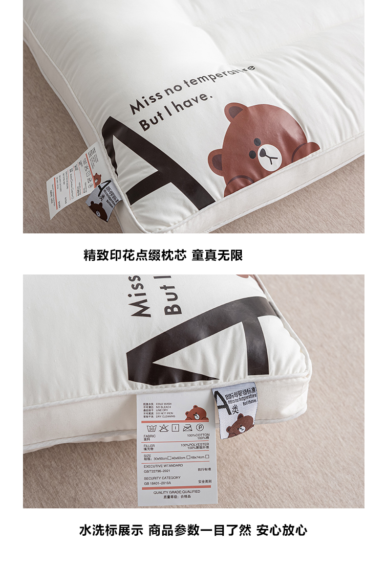 商品名称:(总)金牛2025新款a类卡通小熊全棉枕头亲子枕头枕芯小熊护颈枕