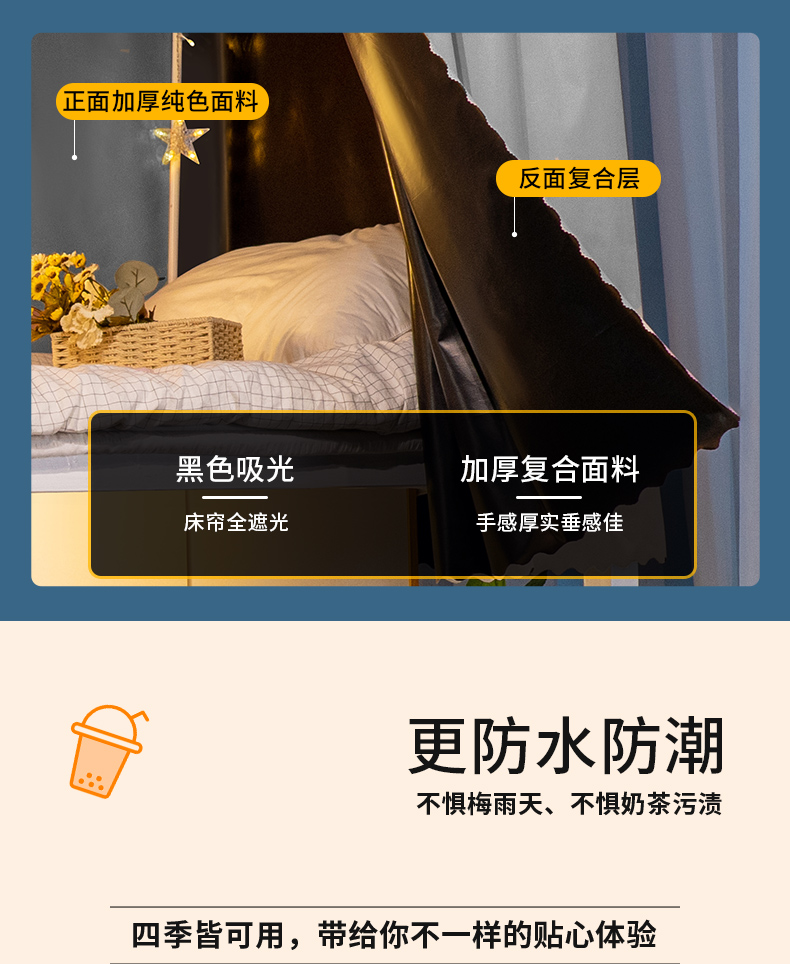 当前位置: 91家纺网 > 商品网购 > 床上用品 > 蚊帐 > 学生蚊帐 > (总)高遮光学生床帘加高宿舍遮挡帘上下铺床帘单片纯色