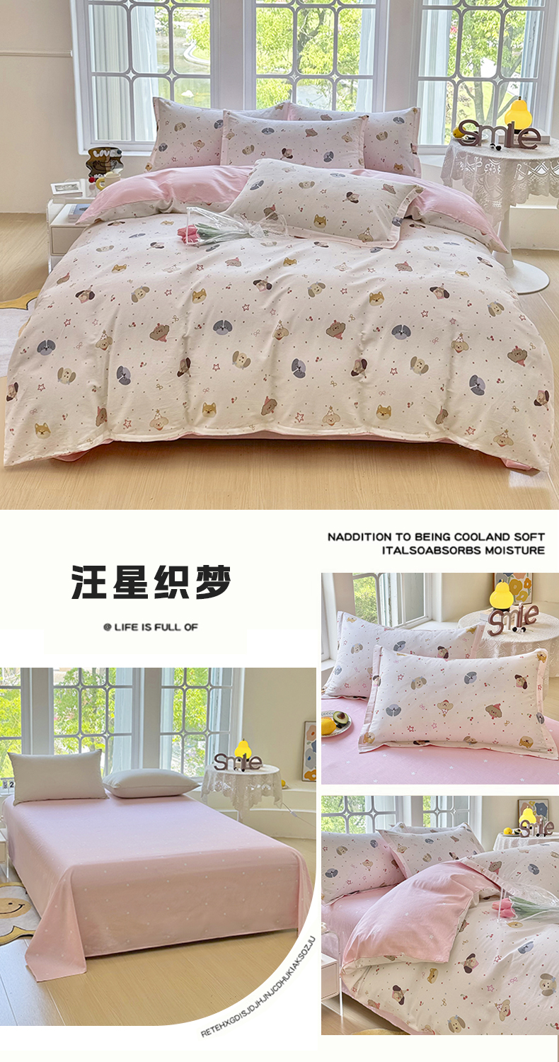 (总)珂博家纺 2025新款12868全棉纯棉小清新印花四件套学生宿舍三件套-系列二,繁花似锦,粉萼摇青,粉穹星语,浮青曳紫,结系花铃,汪星织梦,樱露垂角