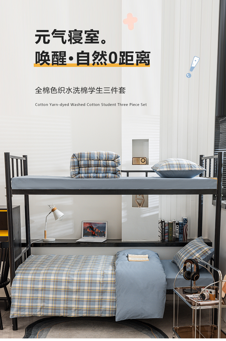 当前位置: 91家纺网 > 商品网购 > 床品套件 > 三件套 > 柠萌家居 2025新款无印良品风色织水洗棉A类学生宿舍三件套 简兮蓝