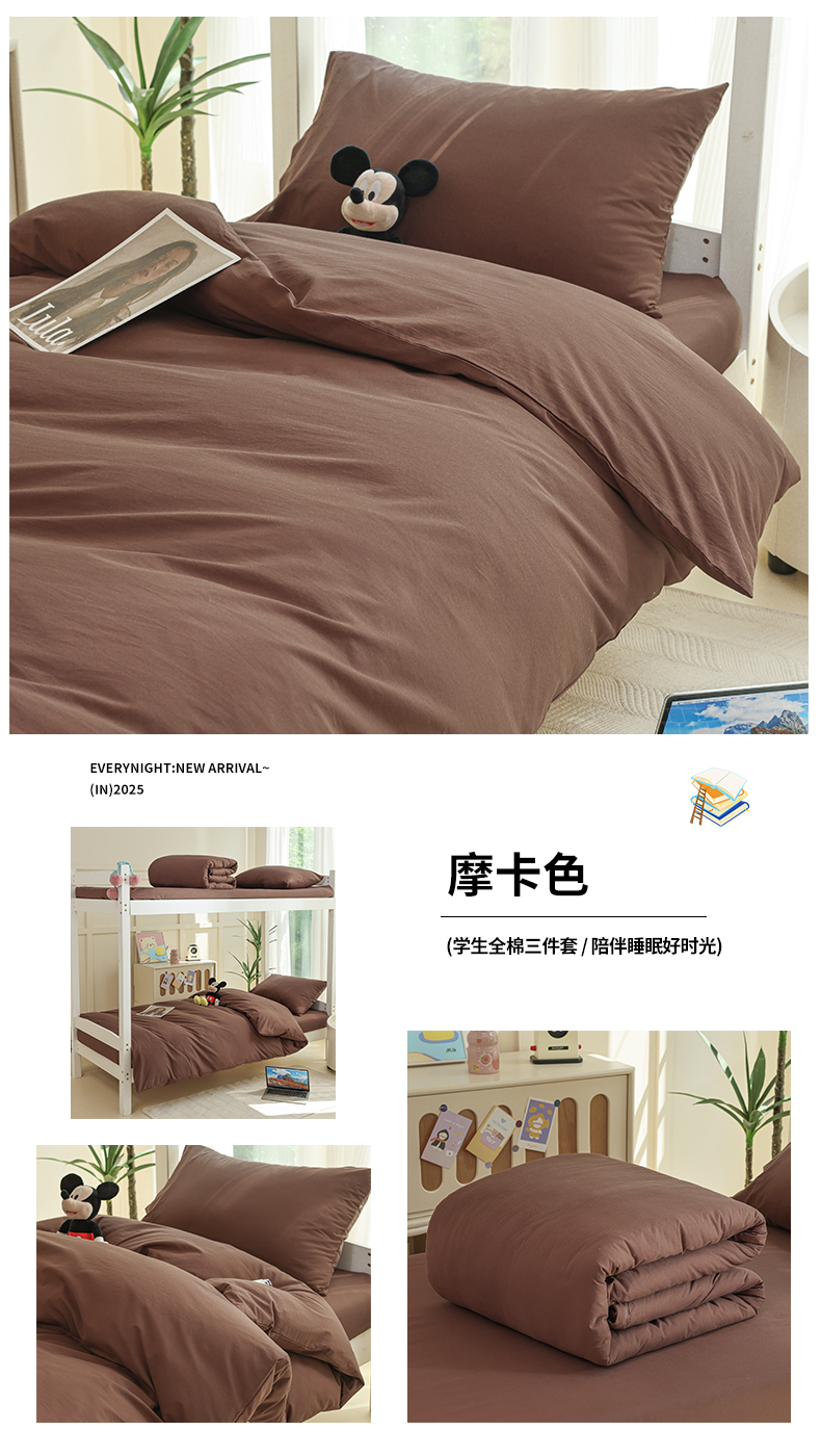 当前位置: 91家纺网 > 商品网购 > 床品套件 > 三件套 > 柠萌家居 2025新款无印良品风色织水洗棉A类学生宿舍三件套 摩卡色