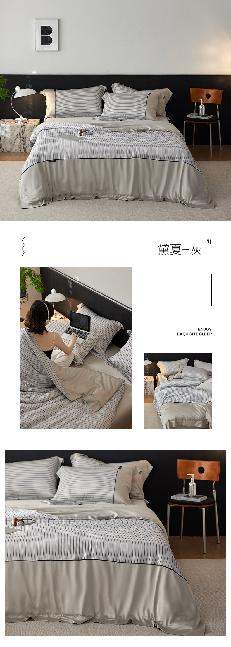 商品名称:安莱生活 2025年新款60支兰精天丝数码印花条纹时尚款四件套 黛夏-灰