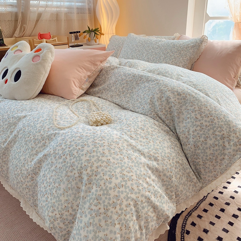 奈萝家纺 2025新款全棉双层纱花边款四件套 秋之寄语兰
