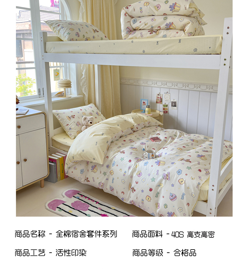 当前位置: 91家纺网 > 商品网购 > 床品套件 > 三件套 > 麦伦家居 2025新款40支13372全棉纯棉斜纹学生上下铺床品宿舍三件套上下铺四件套系列 爱豆熊