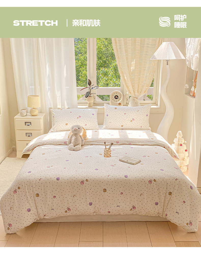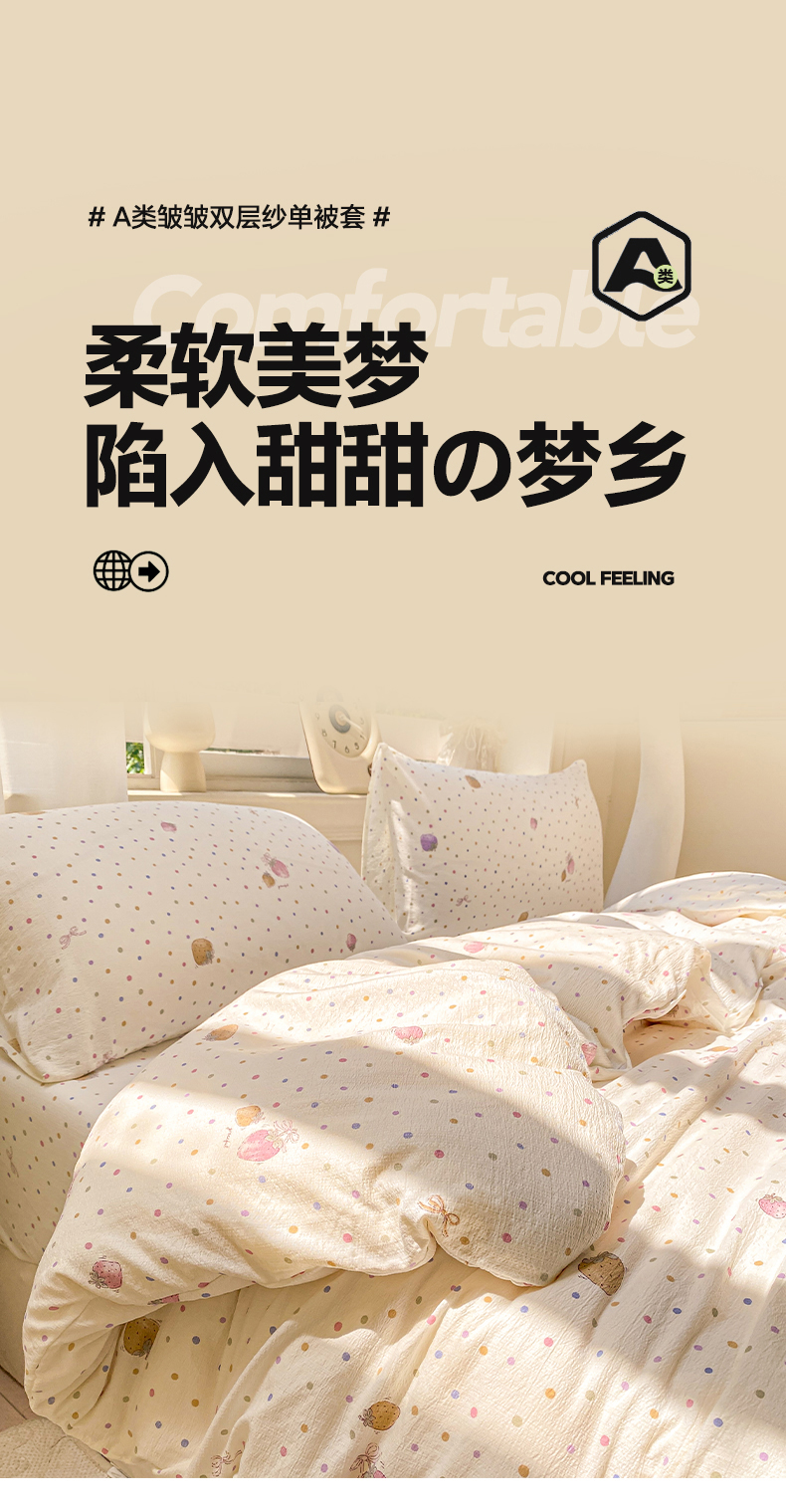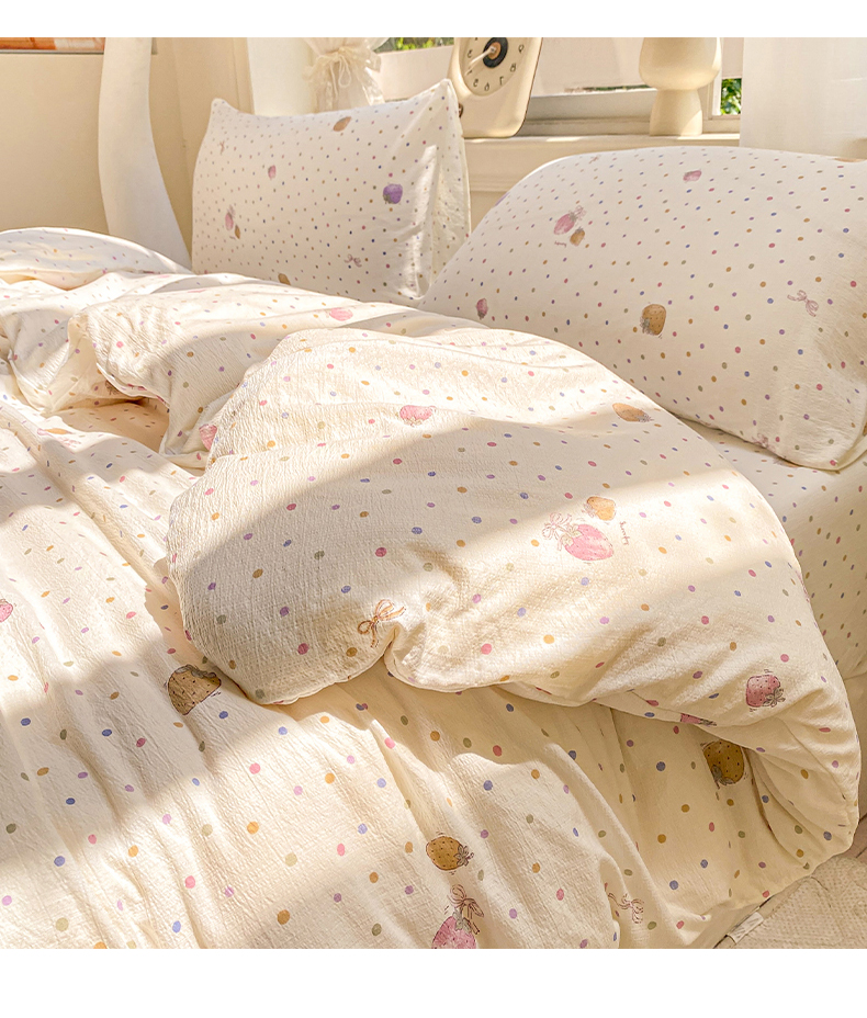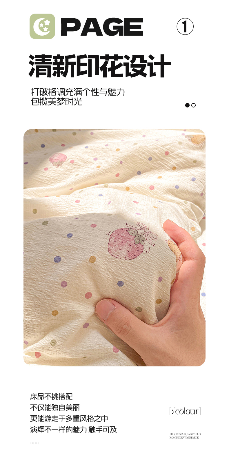 • 91家纺网 家纺一手货源 找家纺 眠势力 2025新款云感双层纱被套三件套ins奶油风云感超柔被罩单件四季款 点点草莓