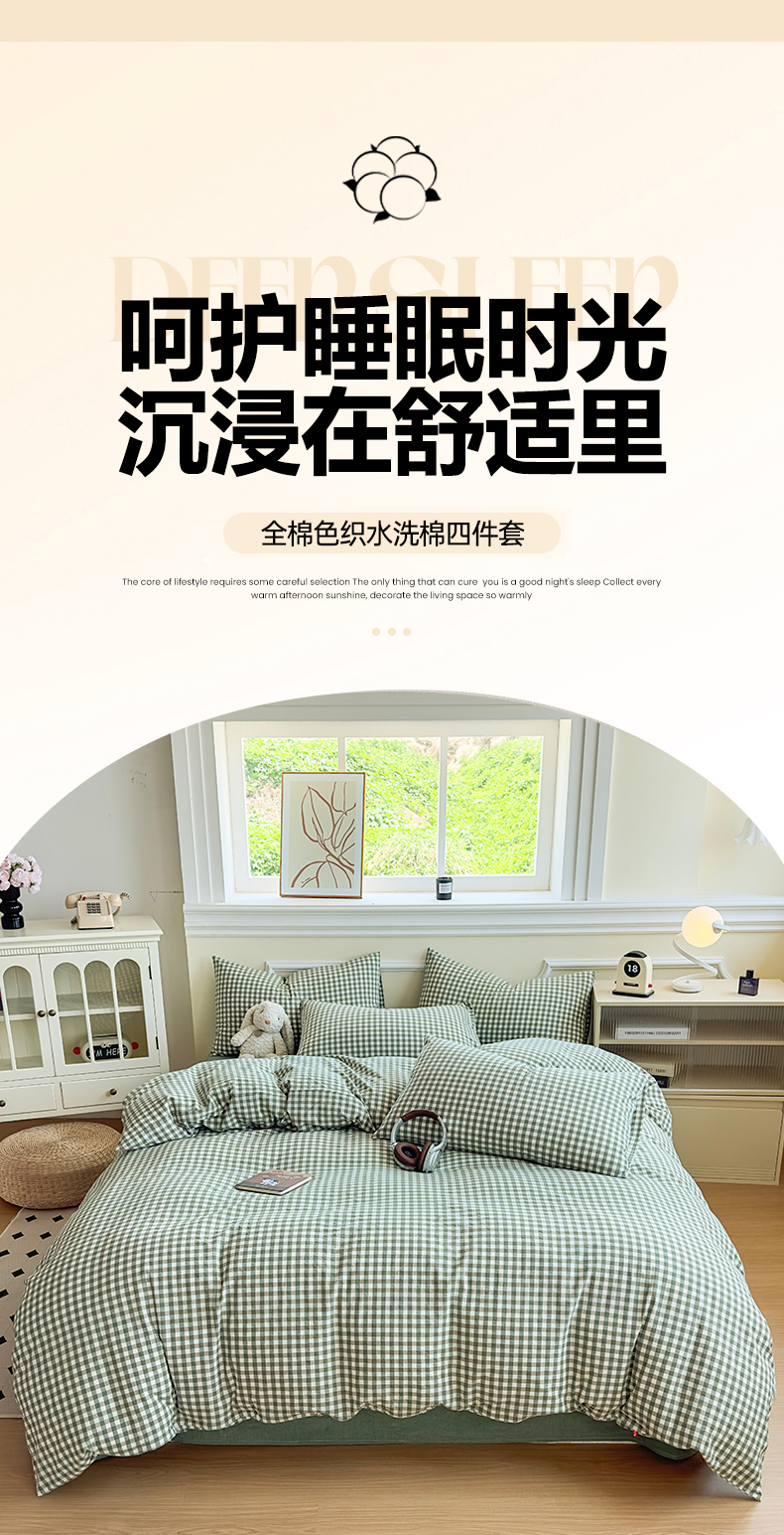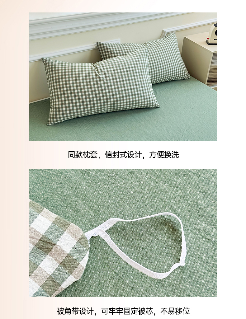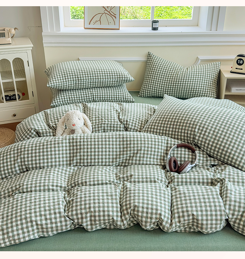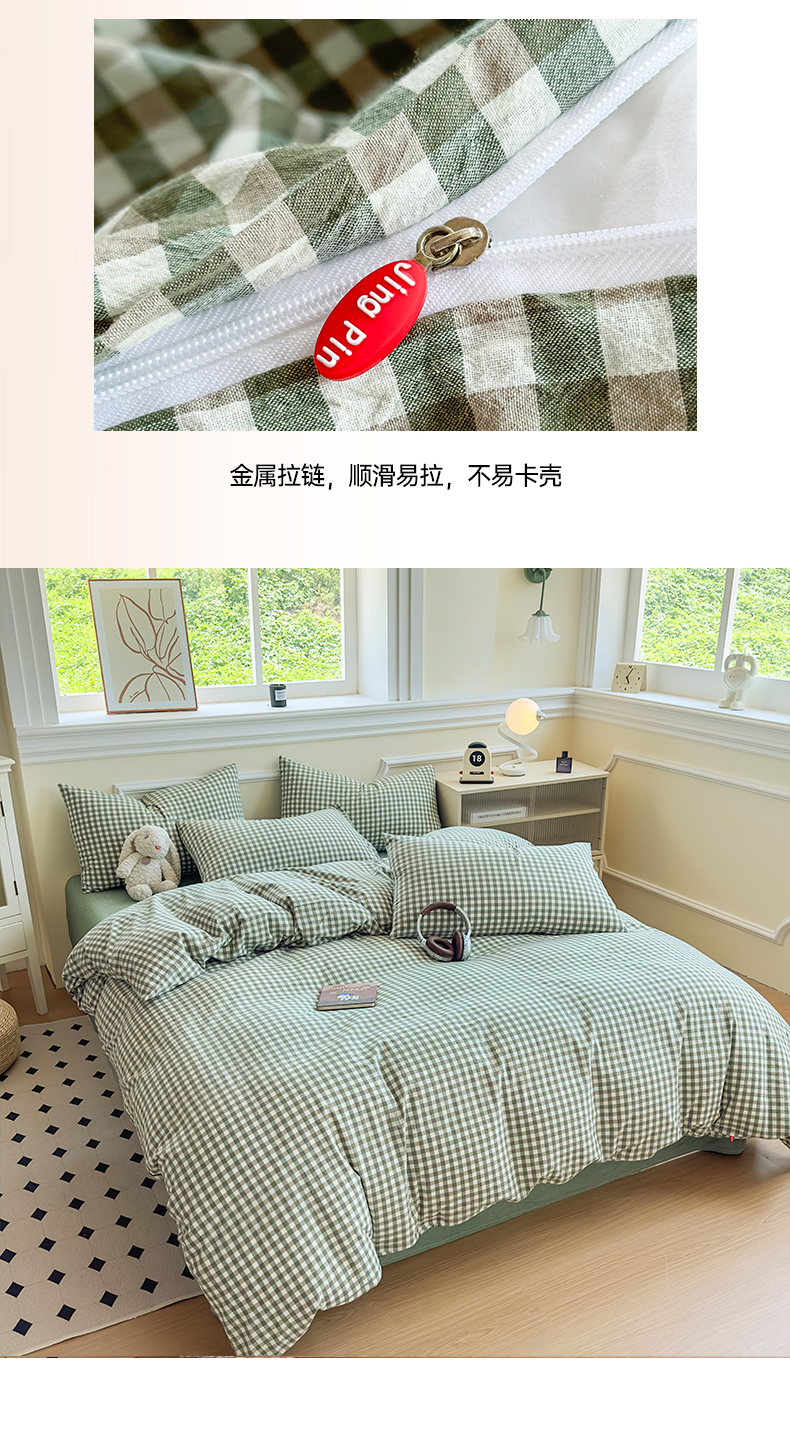 当前位置: 91家纺网 > 商品网购 > 床品套件 > 四件套 > 色织四件套 > 菡宝 【不断货 预留5公分缩水】a类母婴级纯棉全棉色织水洗棉四件套 支持定制定做尺寸 绿小格