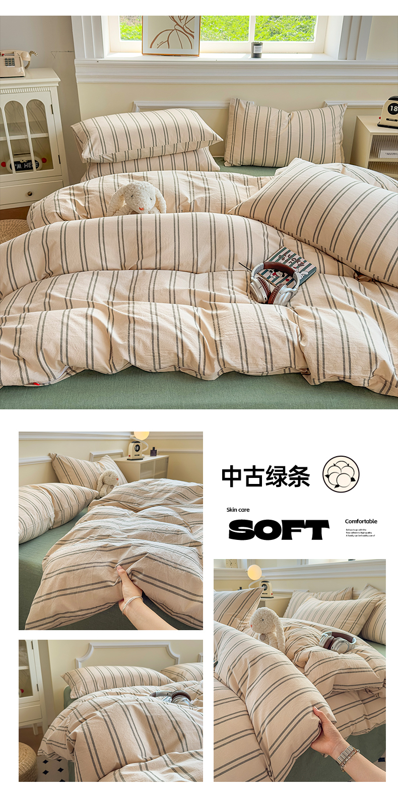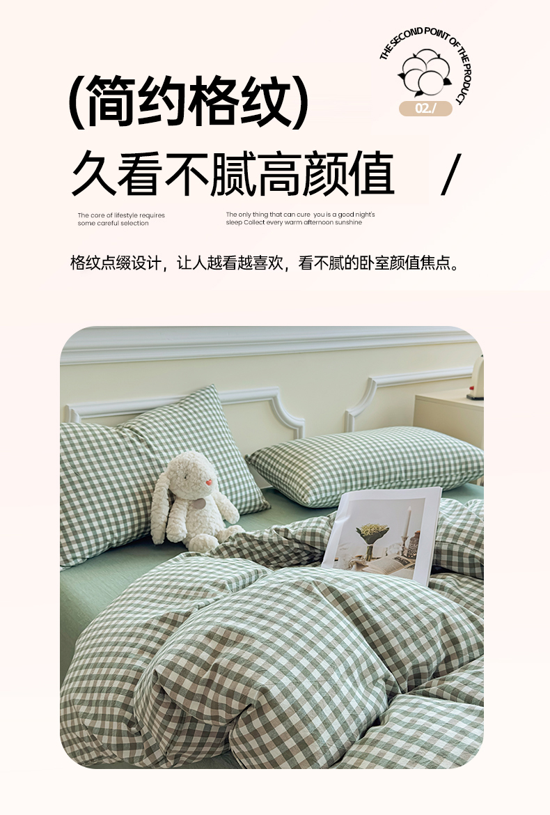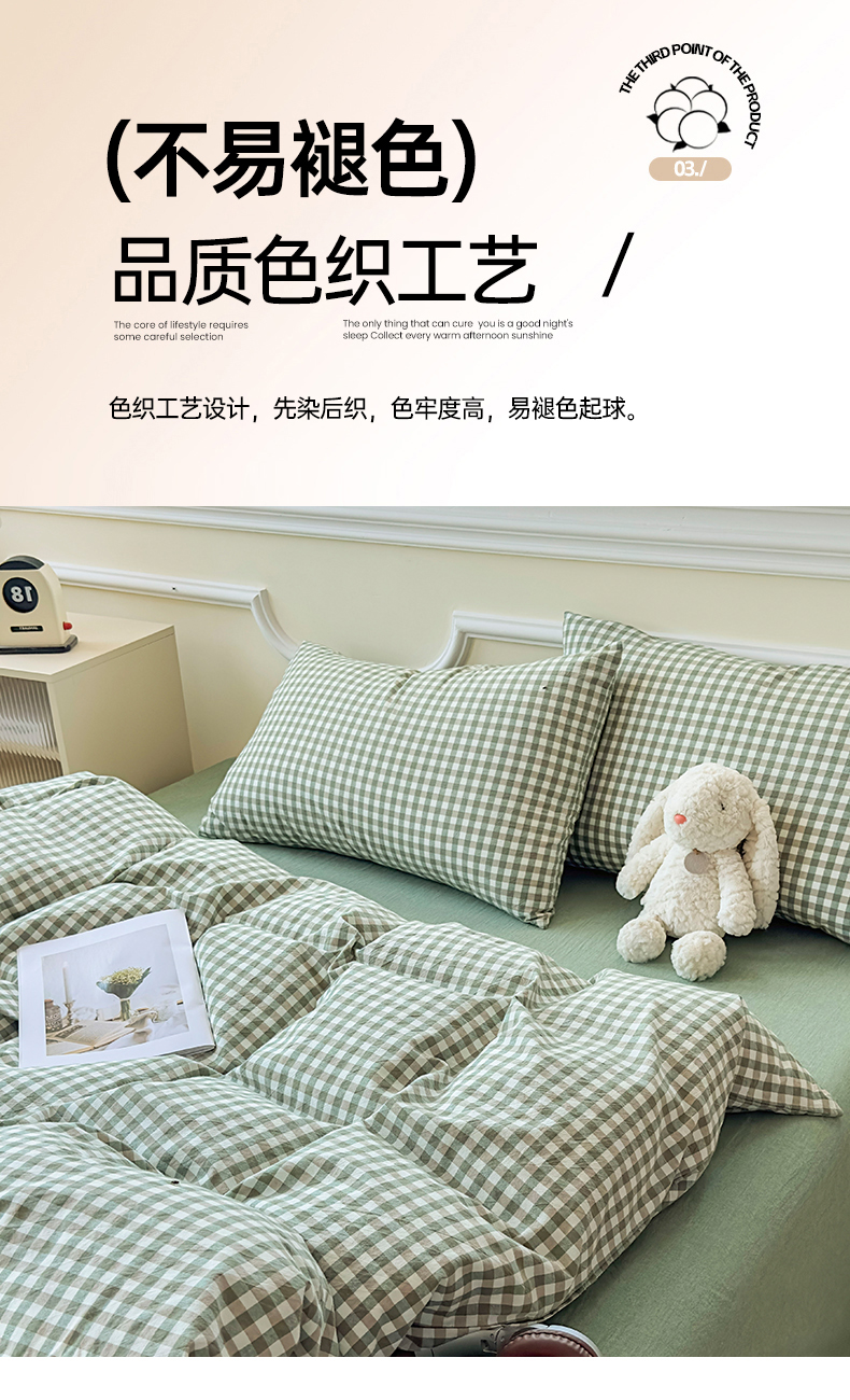 当前位置: 91家纺网 > 商品网购 > 床品套件 > 四件套 > 色织四件套 > 菡宝 【不断货 预留5公分缩水】a类母婴级纯棉全棉色织水洗棉四件套 支持定制定做尺寸 绿小格