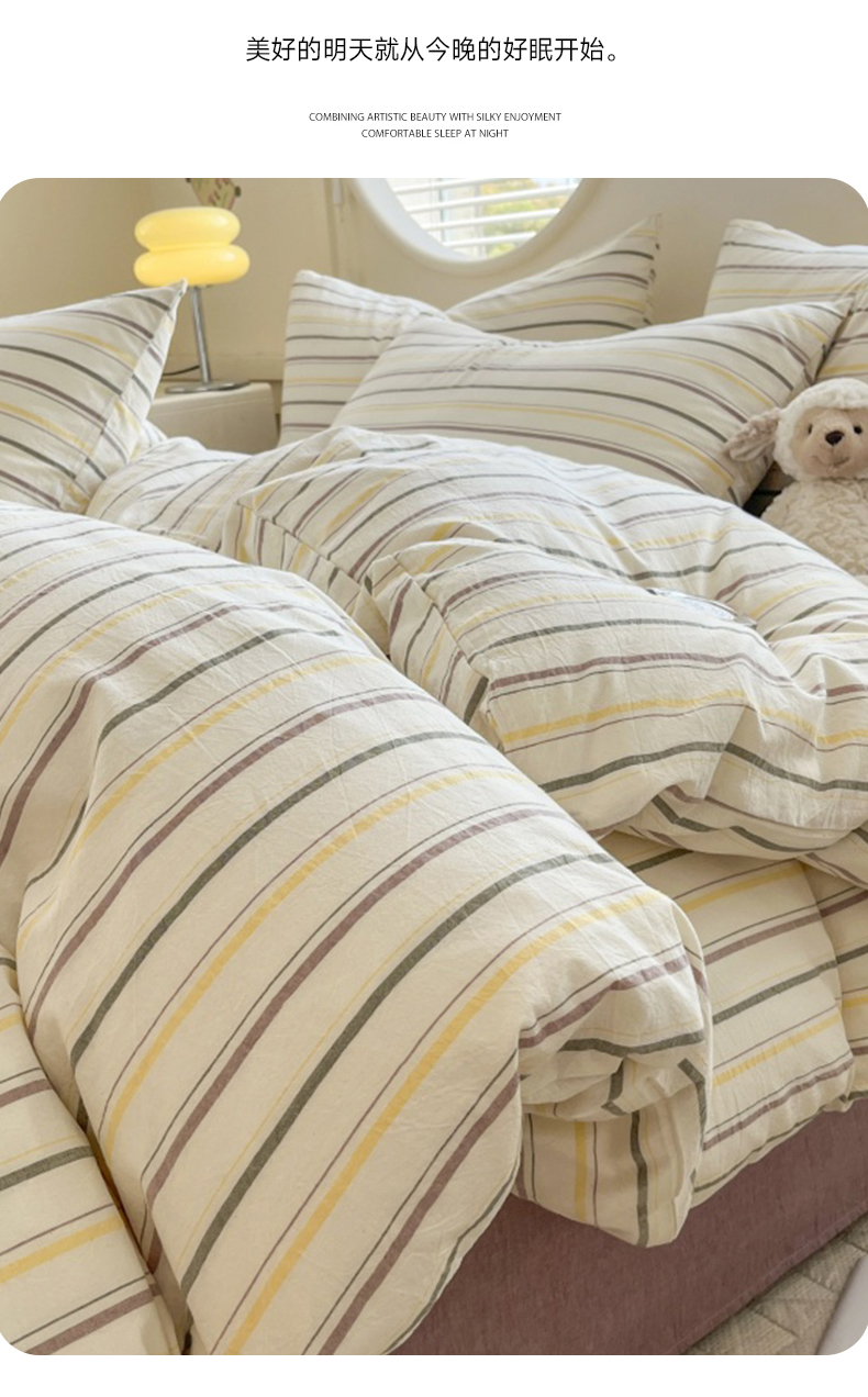 当前位置: 91家纺网 > 商品网购 > 床品套件 > 四件套 > 色织四件套 > 菡宝 【不断货 预留5公分缩水】a类母婴级纯棉全棉色织水洗棉四件套 支持定制定做尺寸 且乐-紫青年