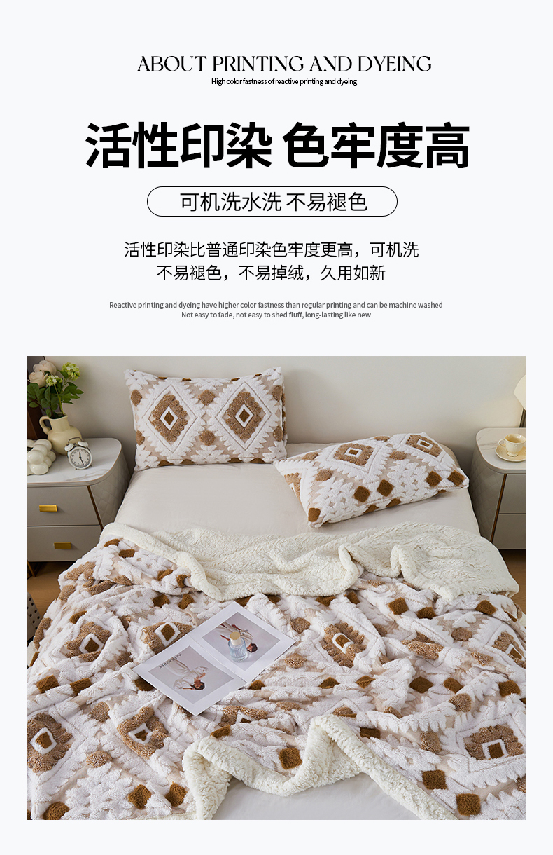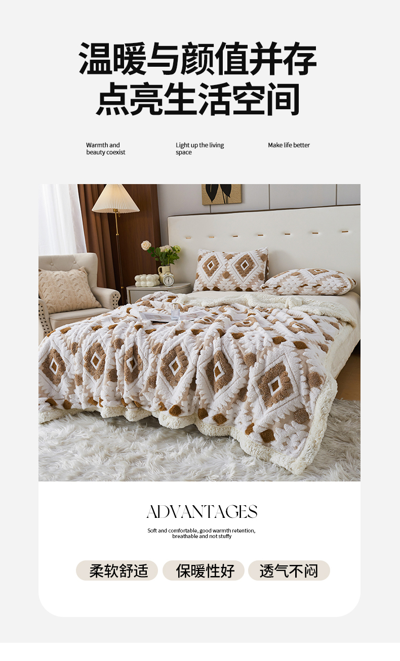 (总)枋梢家纺 2025新款亮丝兔毛绒兔毛提花北欧几何羊羔绒 双层加厚保暖盖毯 居家午睡保暖毯,几何-粉色,几何-咖色,几何-绿色,几何-米黄,几何-浅灰,几何-深灰,几何-驼色,几何-紫色,包装