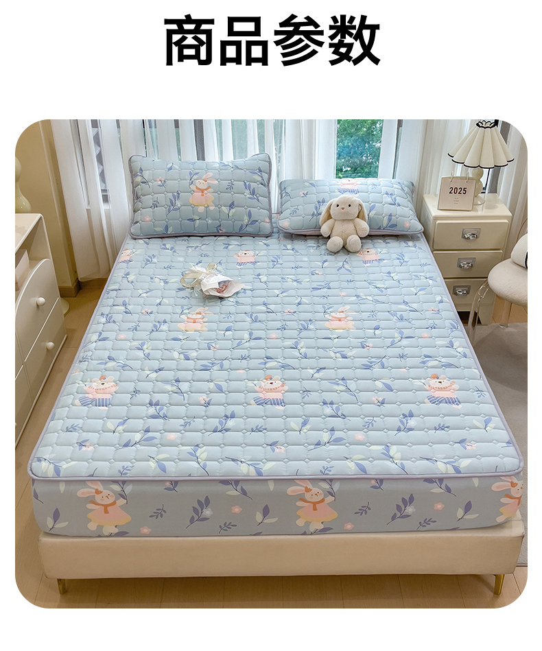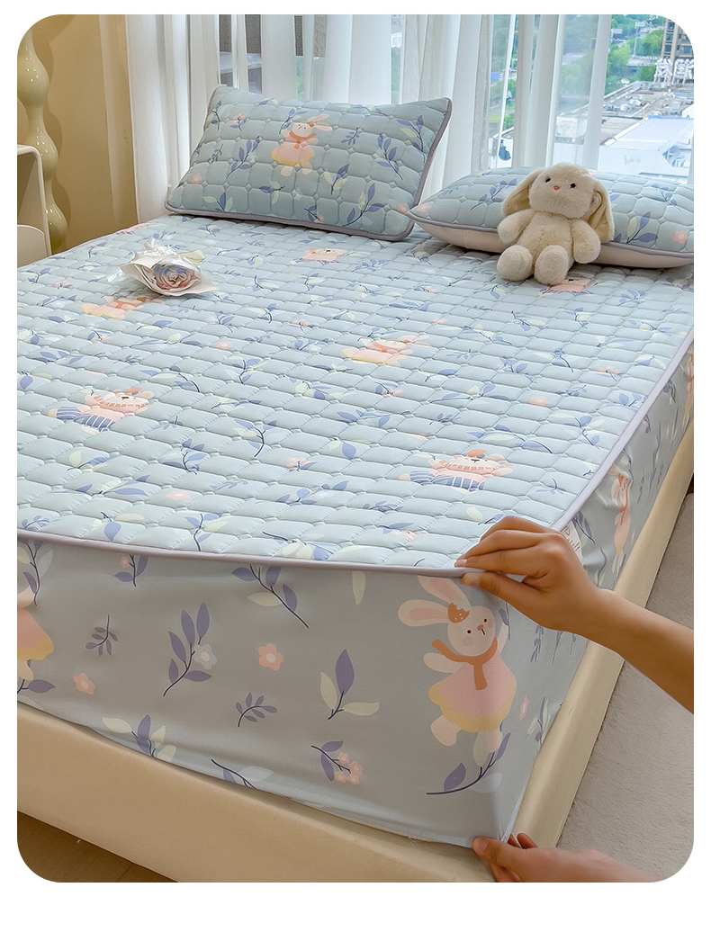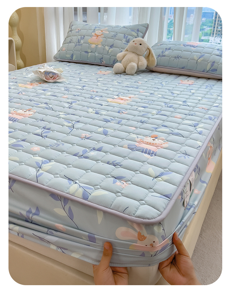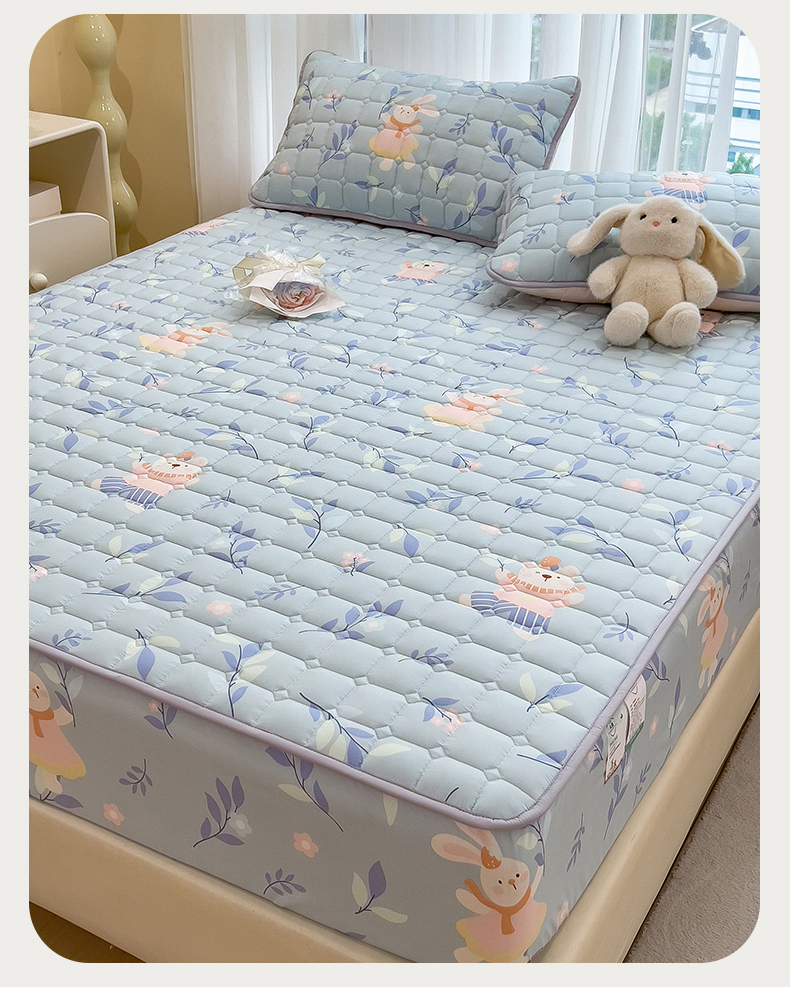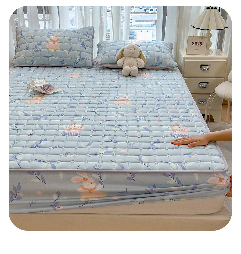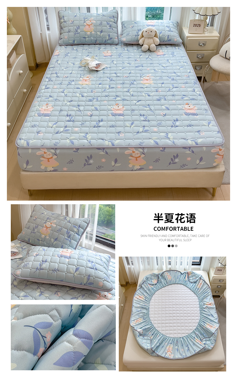 • 91家纺网 家纺一手货源 找家纺 雯豆家纺 2025四季款新品夹棉床笠三件套水洗棉磨毛小清新印花床垫保护套 半夏花语