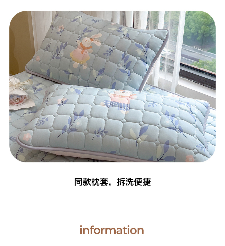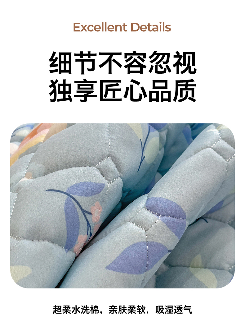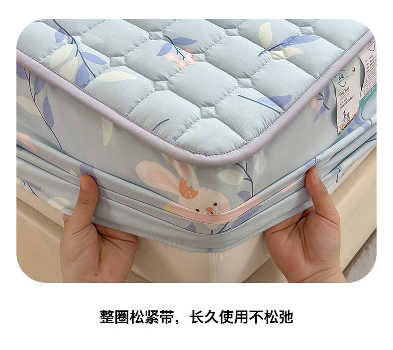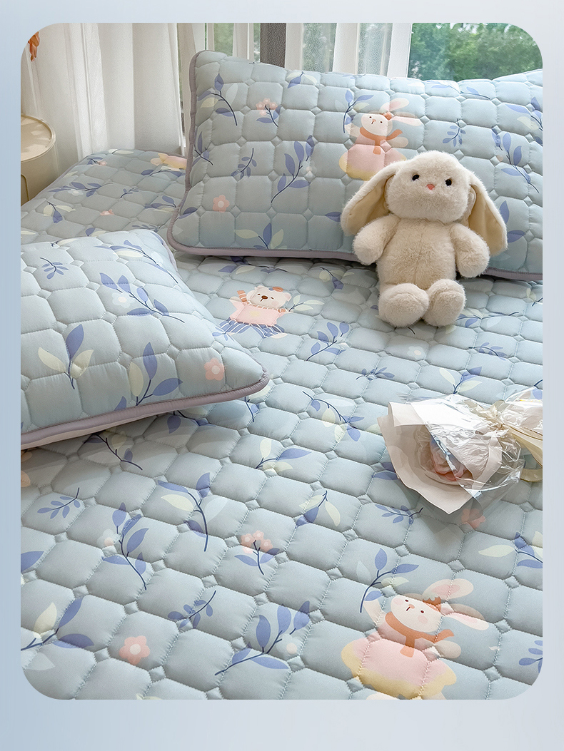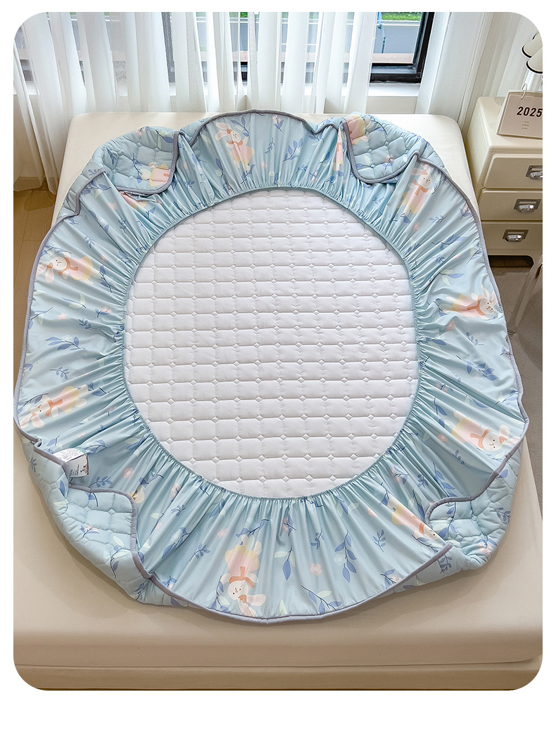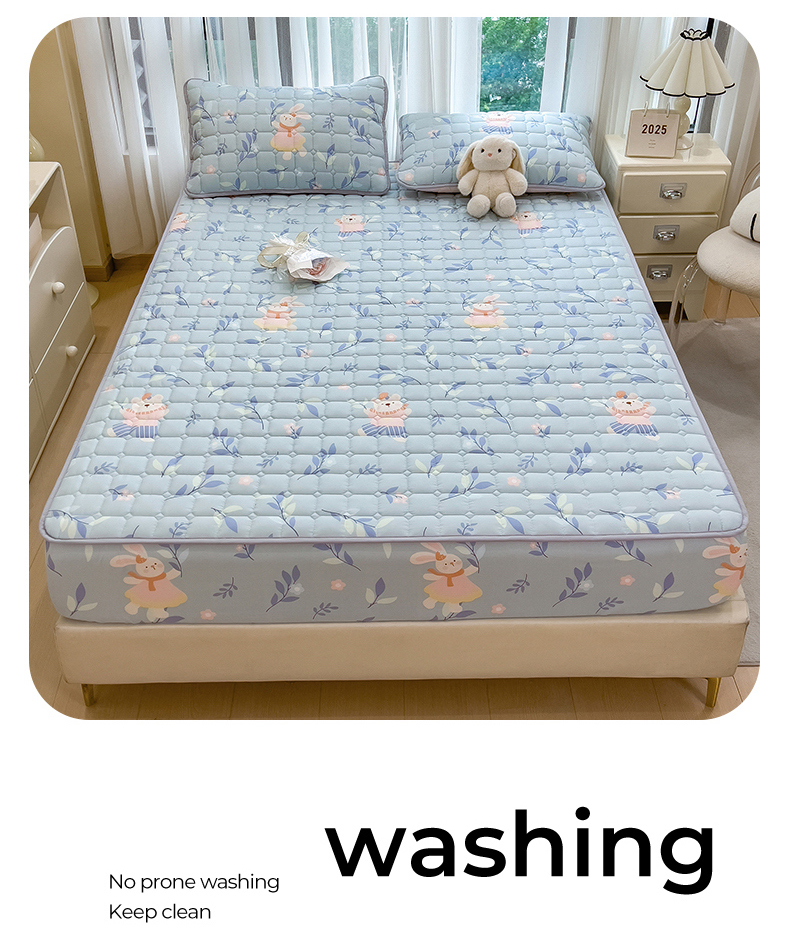 • 91家纺网 家纺一手货源 找家纺 雯豆家纺 2025四季款新品夹棉床笠三件套水洗棉磨毛小清新印花床垫保护套 半夏花语