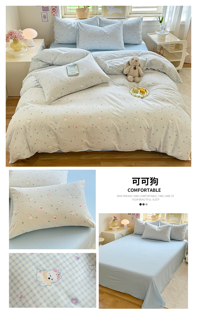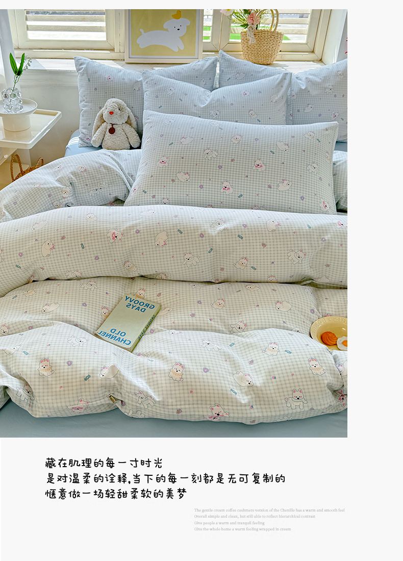 • 91家纺网 家纺一手货源 找家纺 多品家纺 2025新款超柔双层纱水洗棉单被套 可可狗