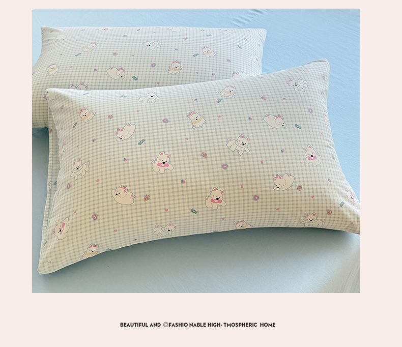 (总)多品家纺 2026新款奶呼呼超柔云感双层纱系列单枕套,白露,半岛兰格,半岛紫格,豹纹猫咪,粉粉小花,福气满满,花田小狗,欢乐时光,开心狗,棉花兔兔,浅浅春意,桃气兔兔,淘气园,汪星人,小橘狗,熊多多,熊熊空间,学院派,樱桃蓝,樱桃紫,组合图