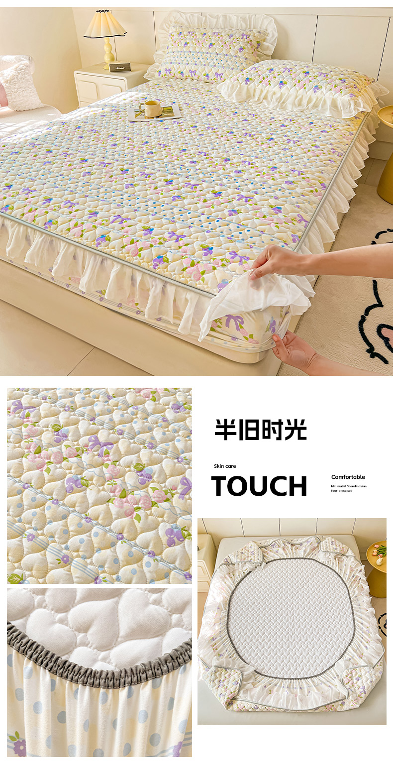 • 91家纺网 家纺一手货源 找家纺 眠势力 2025新款韩版花边夹棉床笠单件公主风四季款床垫保护套床罩 半旧时光