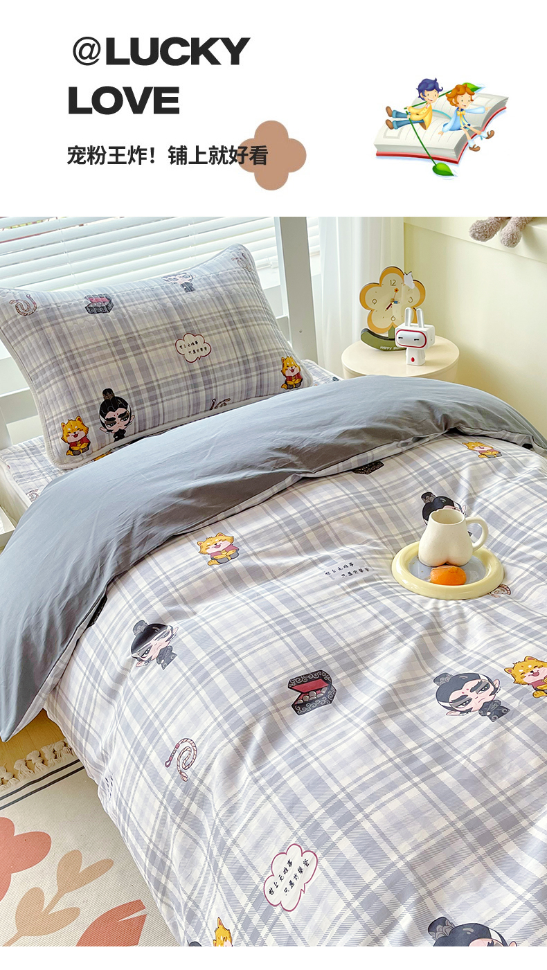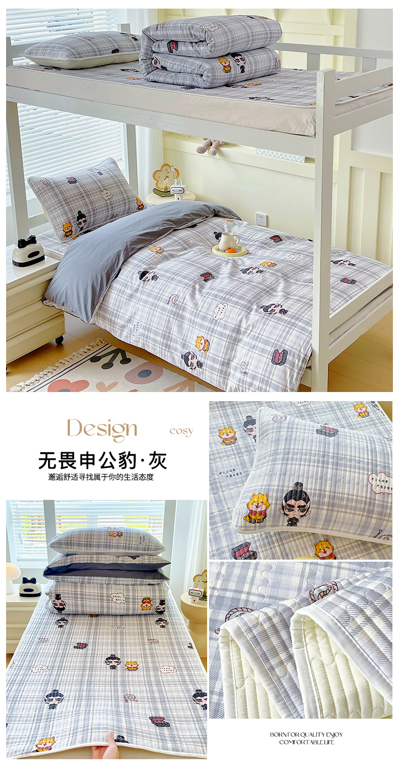当前位置: 91家纺网 > 商品网购 > 床品套件 > 三件套 > 金鑫汇家纺2025新款A类宿舍全棉印花床盖三件套 无畏申公豹·灰