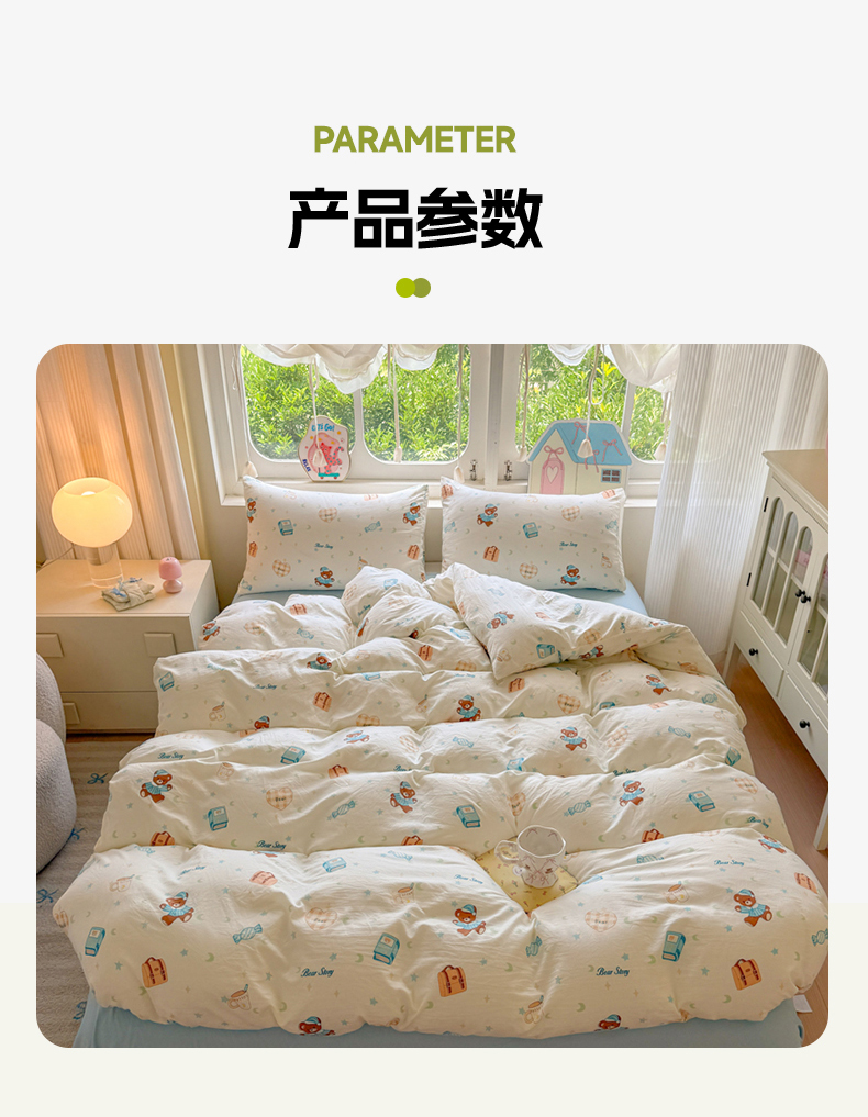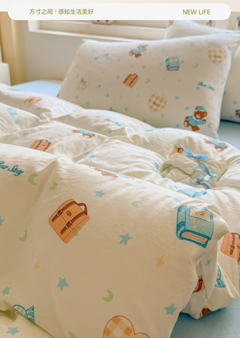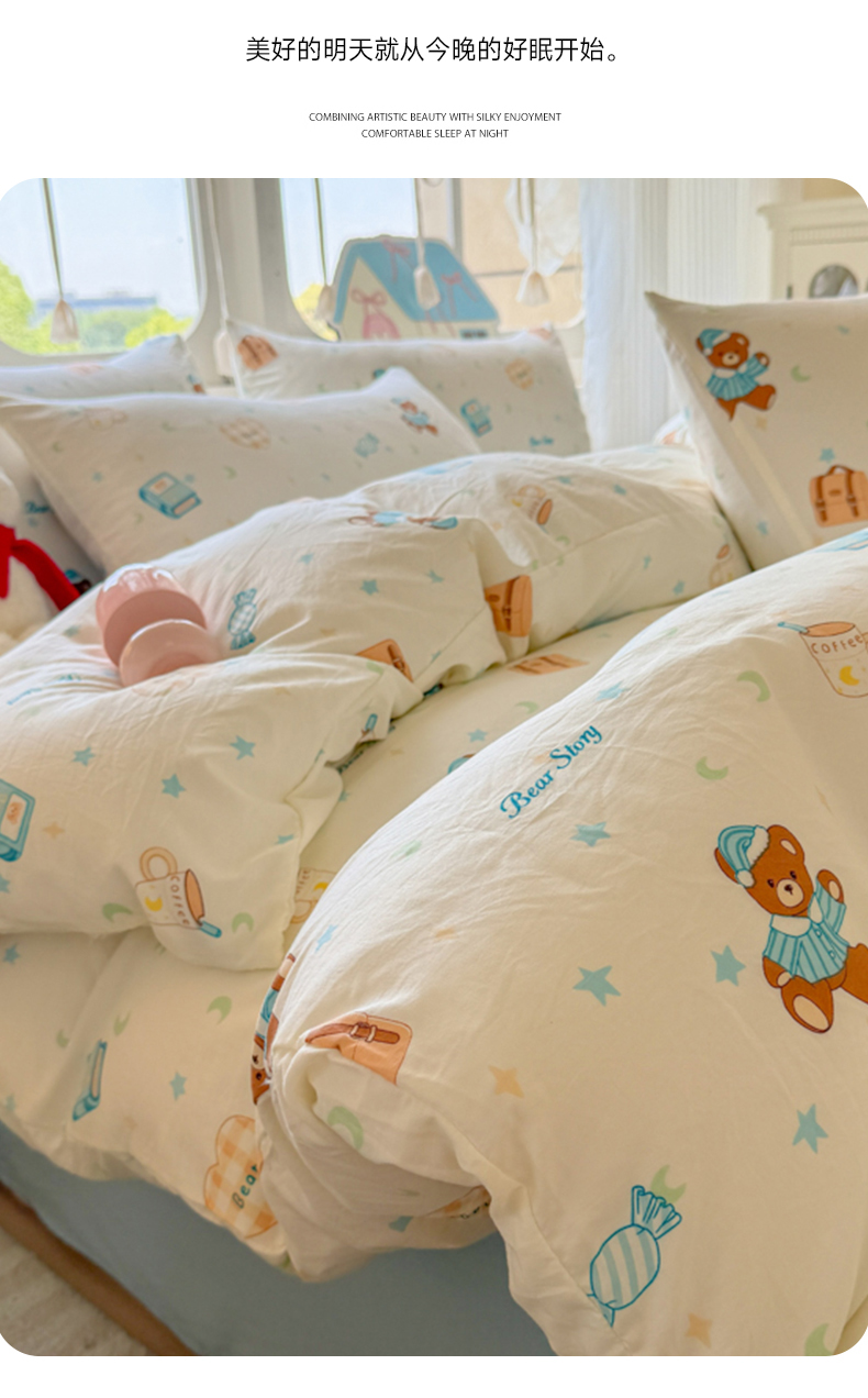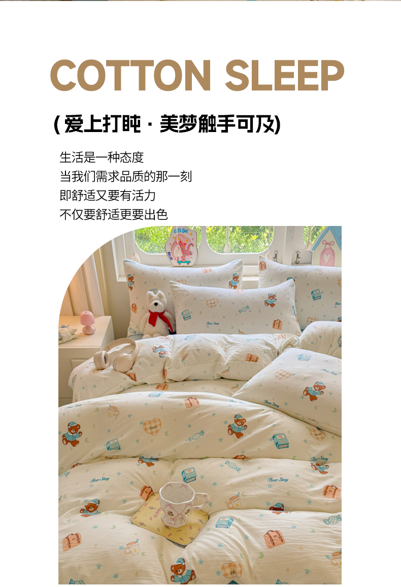 当前位置: 91家纺网 > 商品网购 > 床品套件 > 四件套 > 水洗棉四件套 > 晚爱家纺(原晚安家居) 2025新款超柔水洗棉四件套卡通小清新学生宿舍三件套 晚安熊