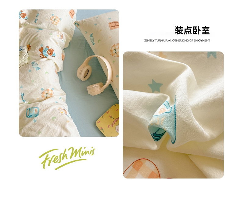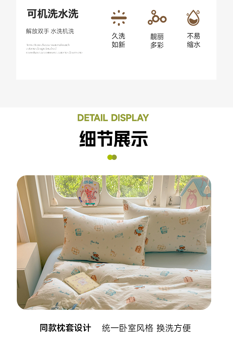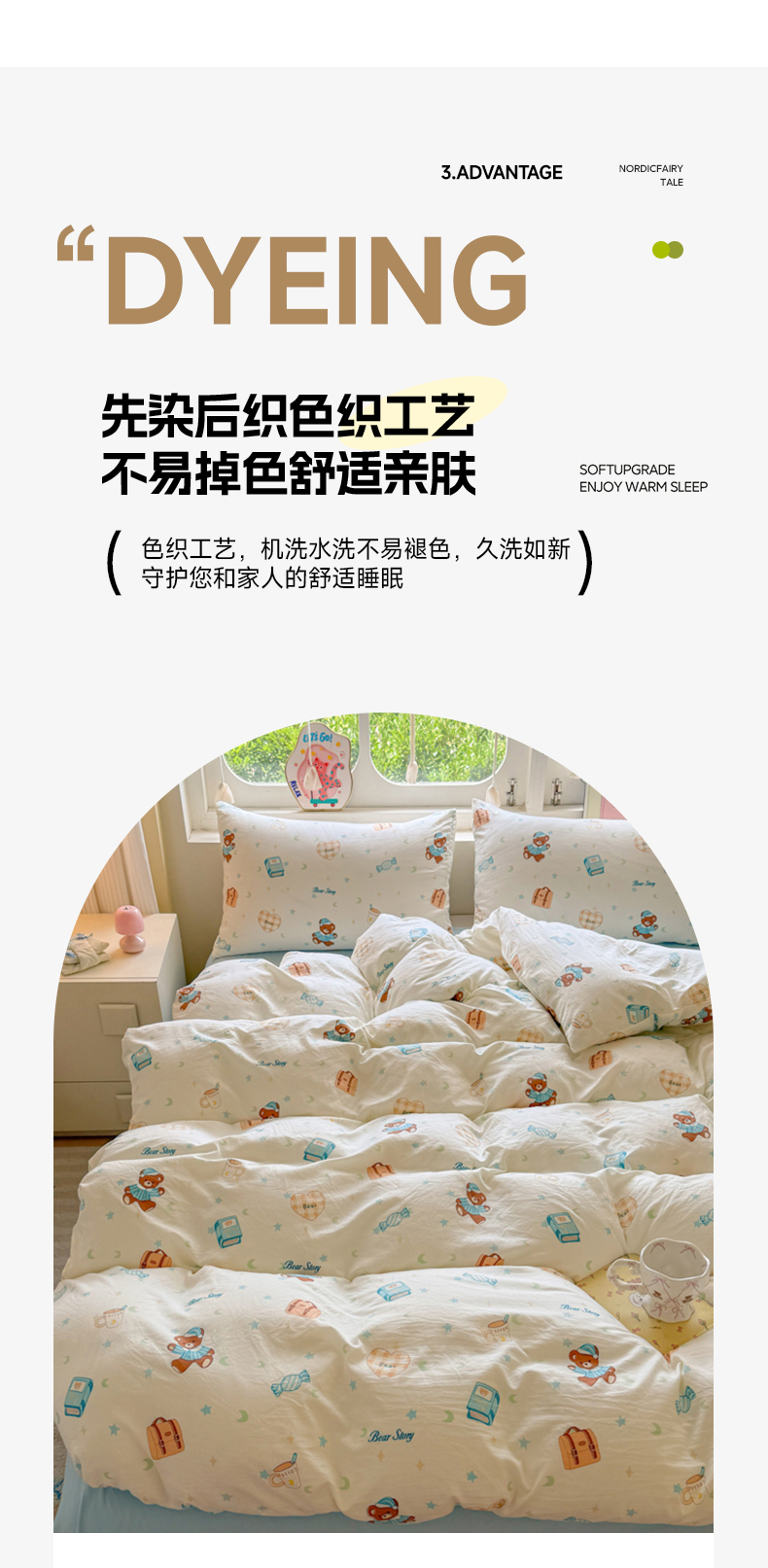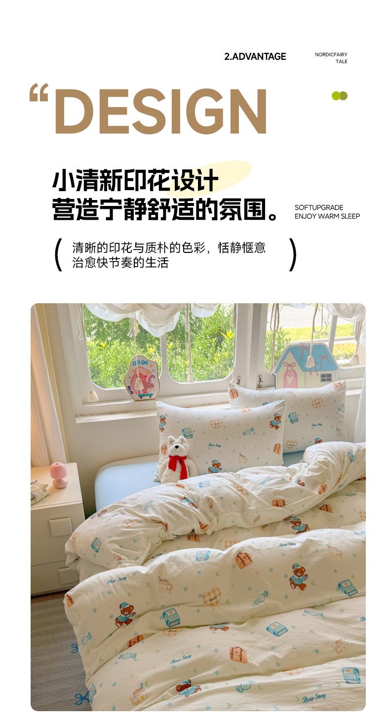 当前位置: 91家纺网 > 商品网购 > 床品套件 > 四件套 > 水洗棉四件套 > 晚爱家纺(原晚安家居) 2025新款超柔水洗棉四件套卡通小清新学生宿舍三件套 晚安熊