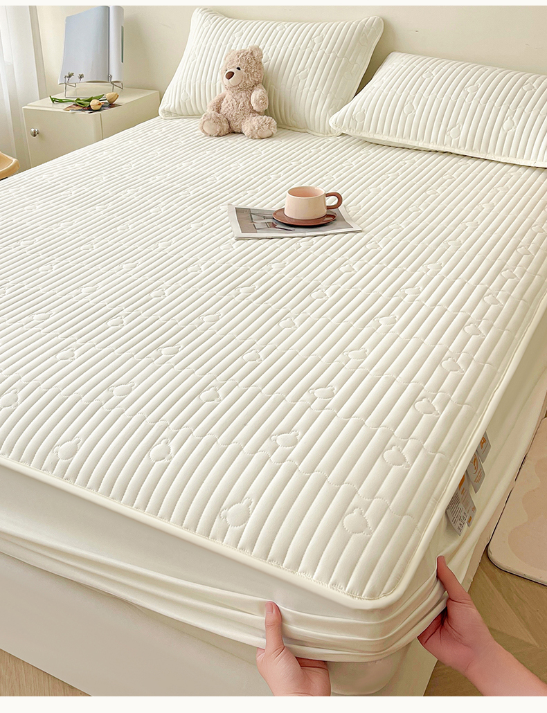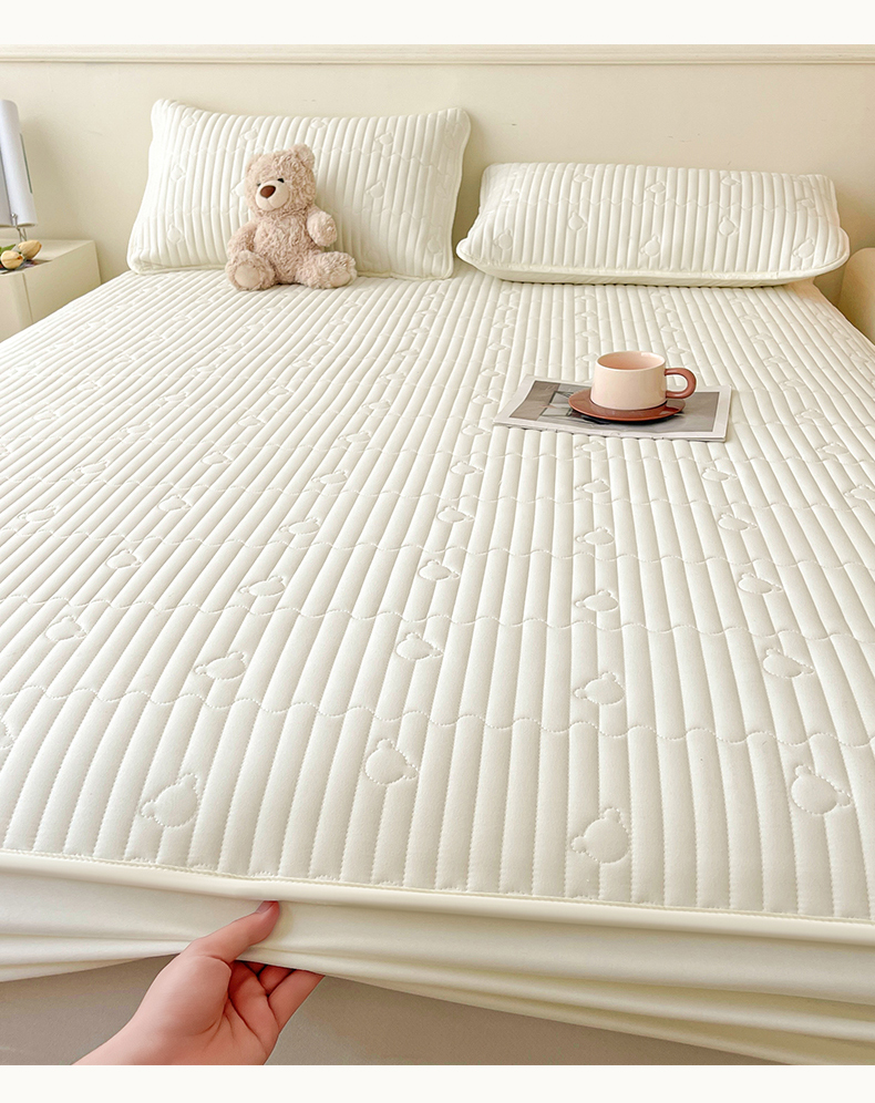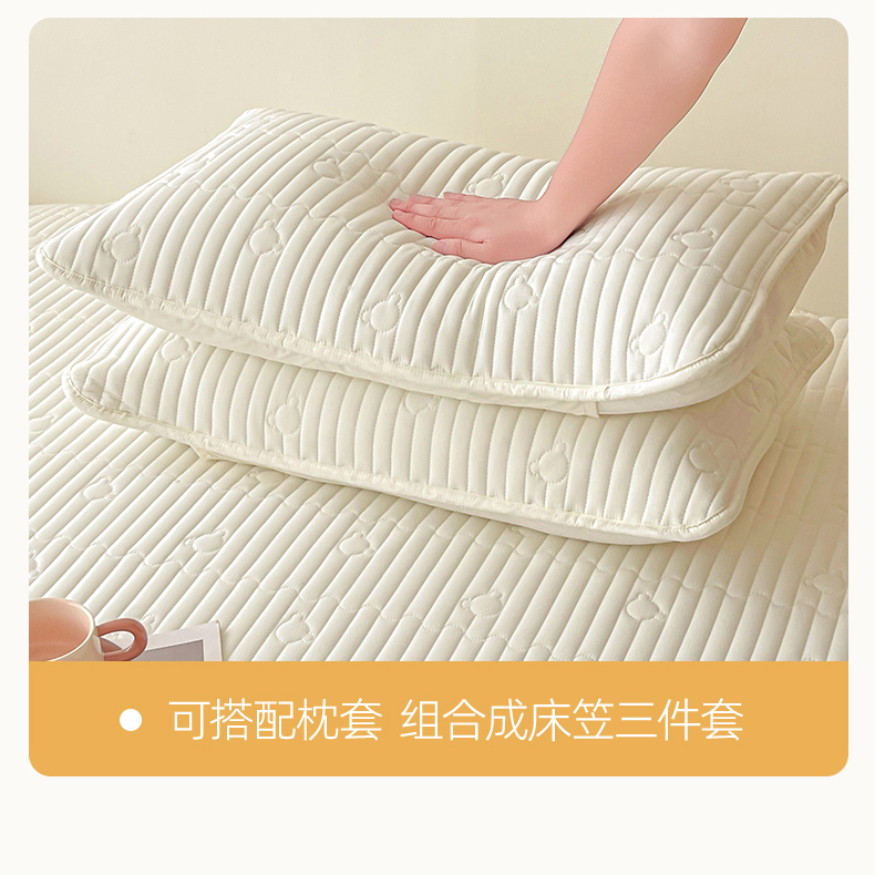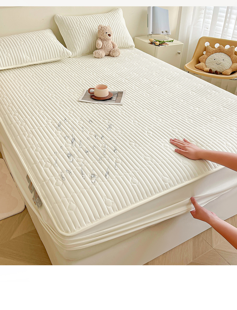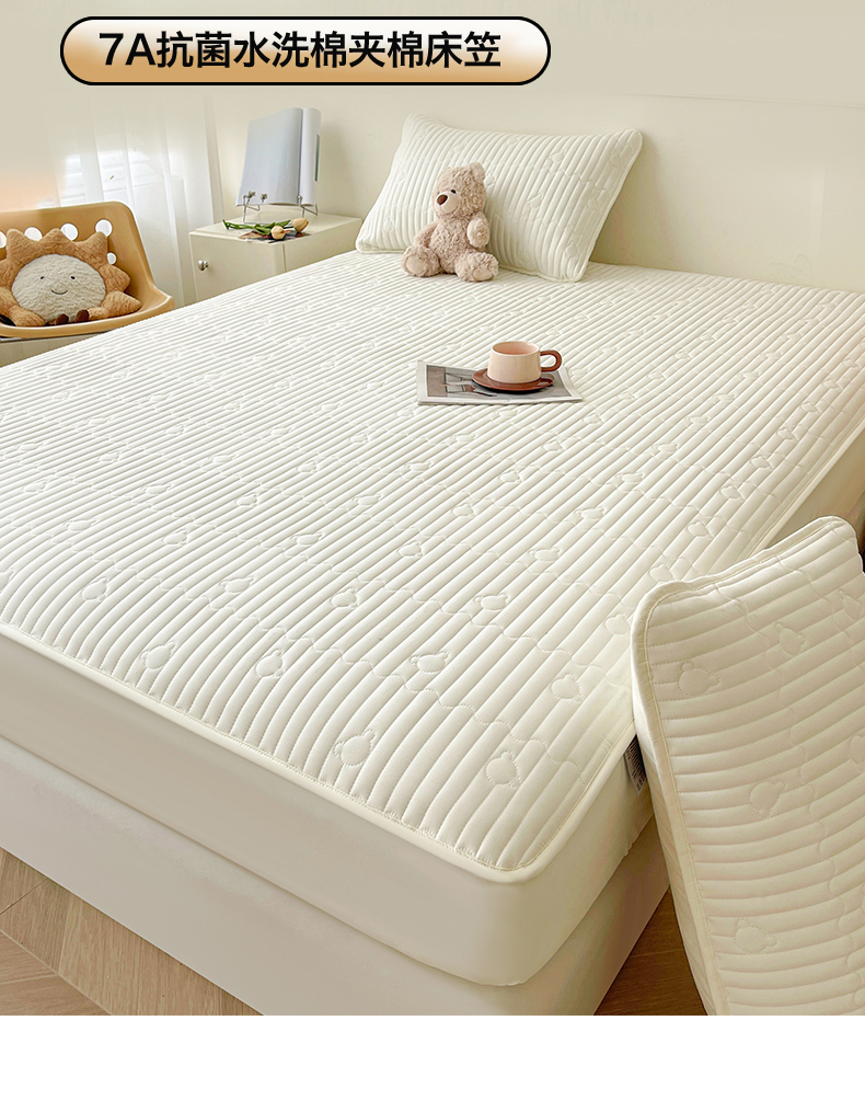 雯豆家纺 2025新款洛川A类防水夹棉床笠三件套水洗棉磨毛床单保护套 洛川-月光白