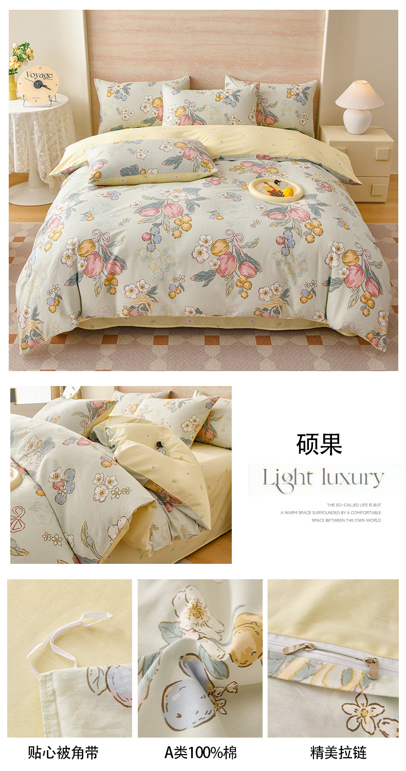当前位置: 91家纺网 > 商品网购 > 床品套件 > 四件套 > 全棉普通四件套 > 宇彬家纺 2026直播新款13070全棉纯棉印花床单床笠款四件套和单被套喷气清新简约(缩水足可定做) 硕果