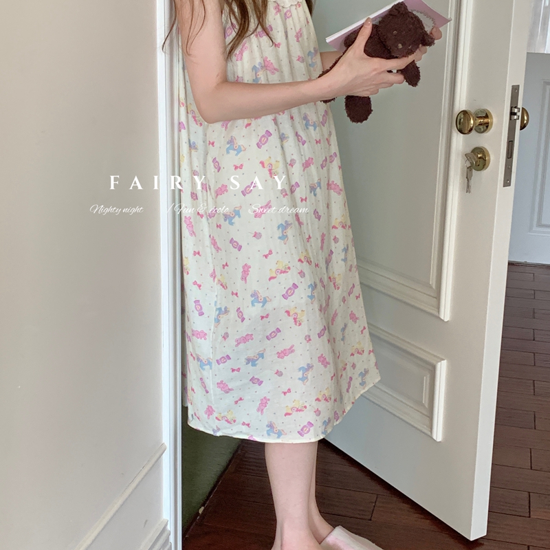 当前位置: 91家纺网 > 商品网购 > 居家日用 > 睡衣/家居服套装 > 妍景家居生活馆 2025新款纱布吊带睡裙 软糖兔子