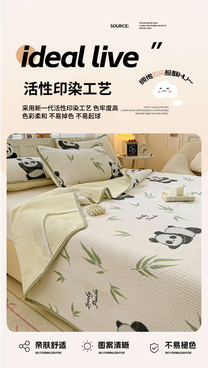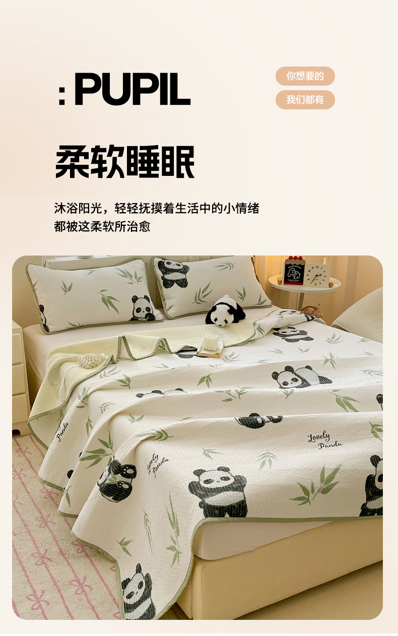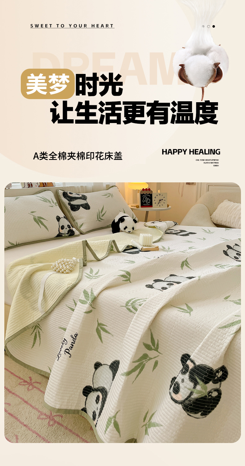 • 91家纺网 家纺一手货源 找家纺 富馨莱 2025春夏新款纯棉夹棉单床盖床盖单件薄床垫 熊猫团子