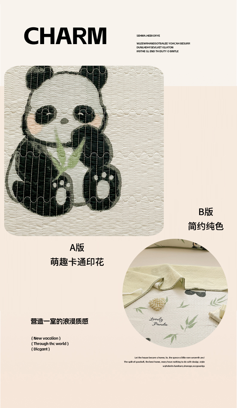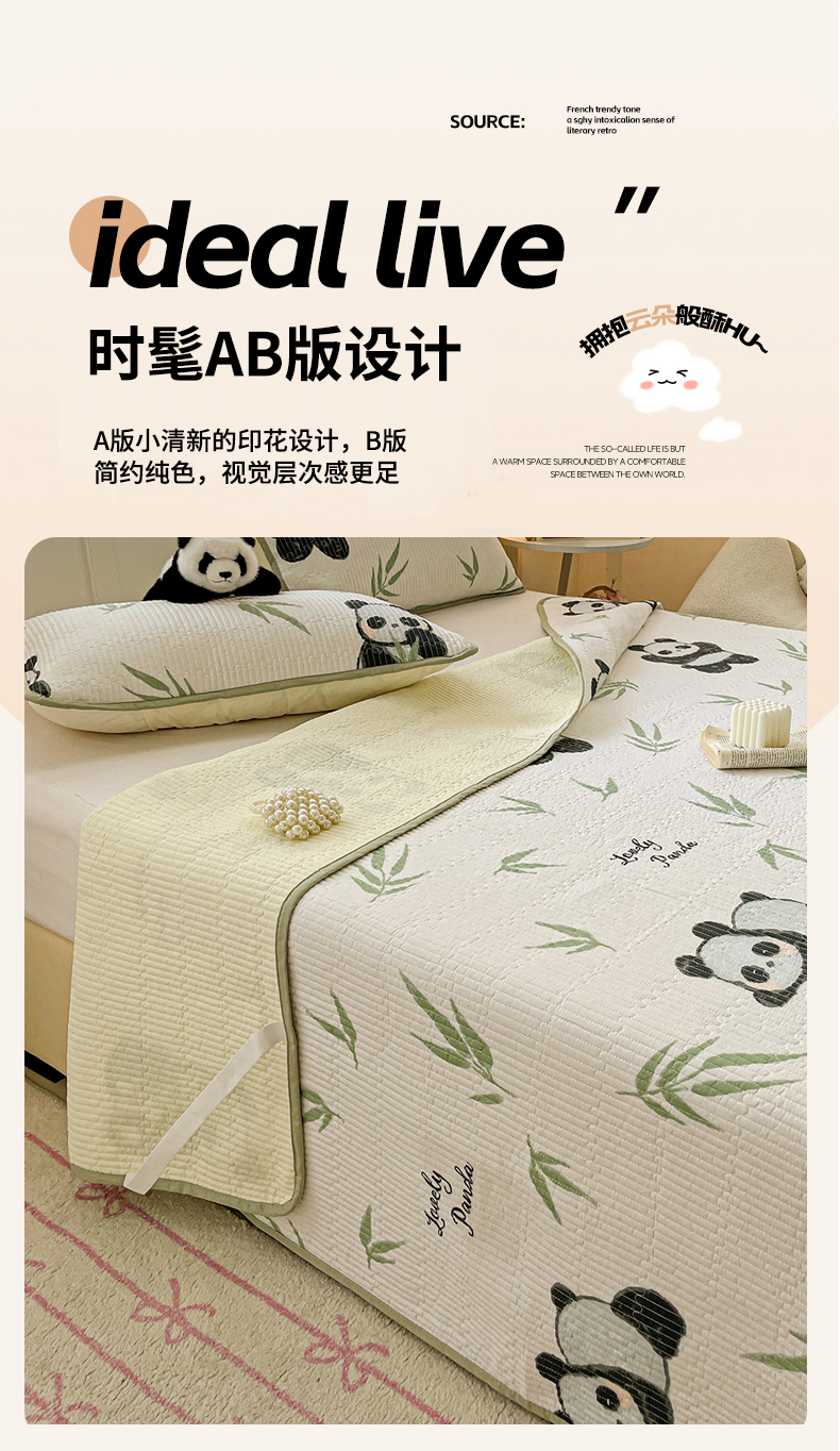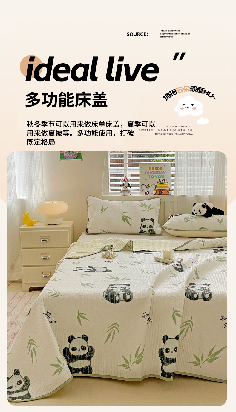• 91家纺网 家纺一手货源 找家纺 富馨莱 2025春夏新款纯棉夹棉单床盖床盖单件薄床垫 熊猫团子