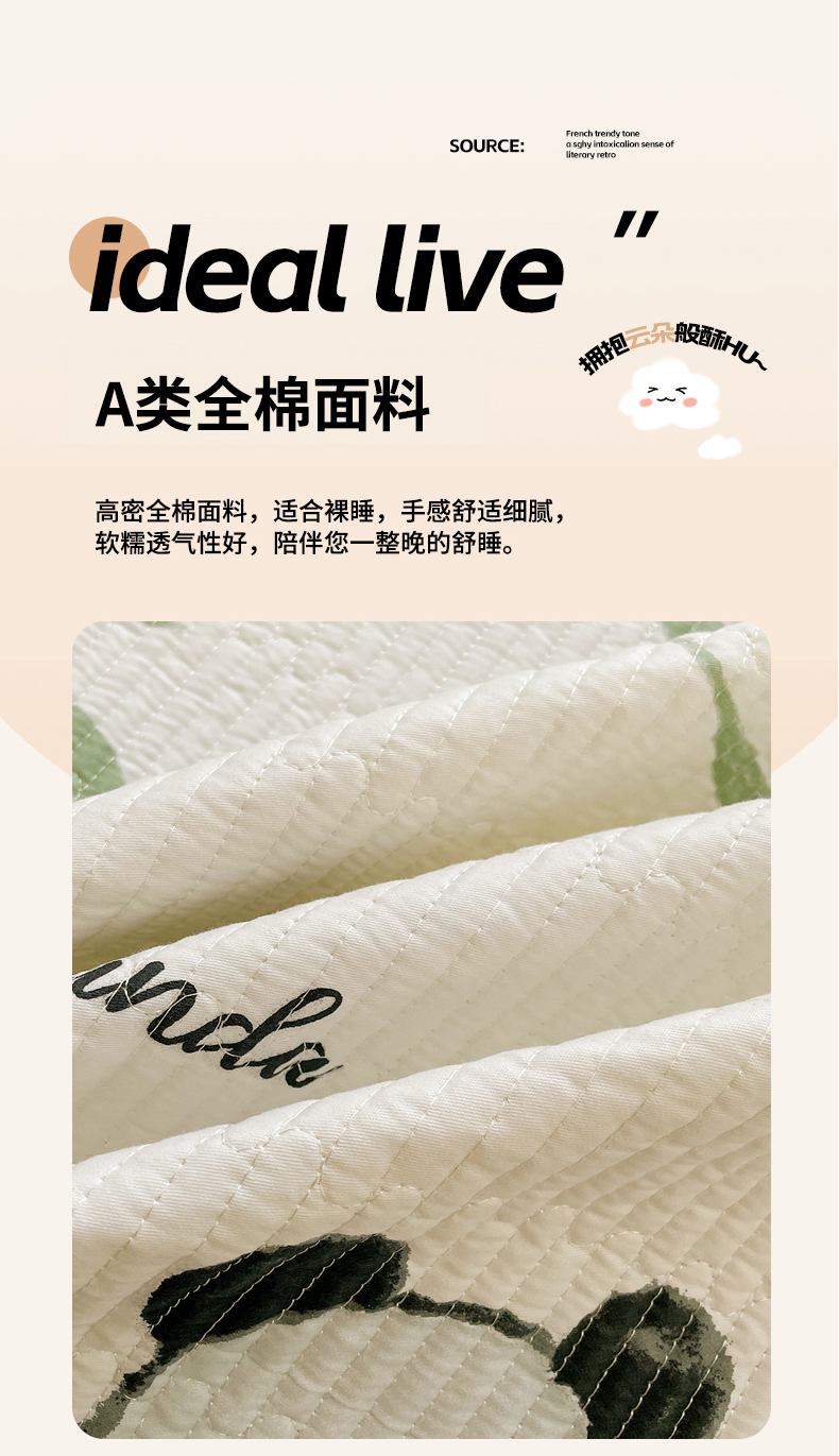 当前位置: 91家纺网 > 商品网购 > 床上用品 > 床盖 > 富馨莱 2025春夏新款纯棉夹棉单床盖床盖单件薄床垫 熊猫团子