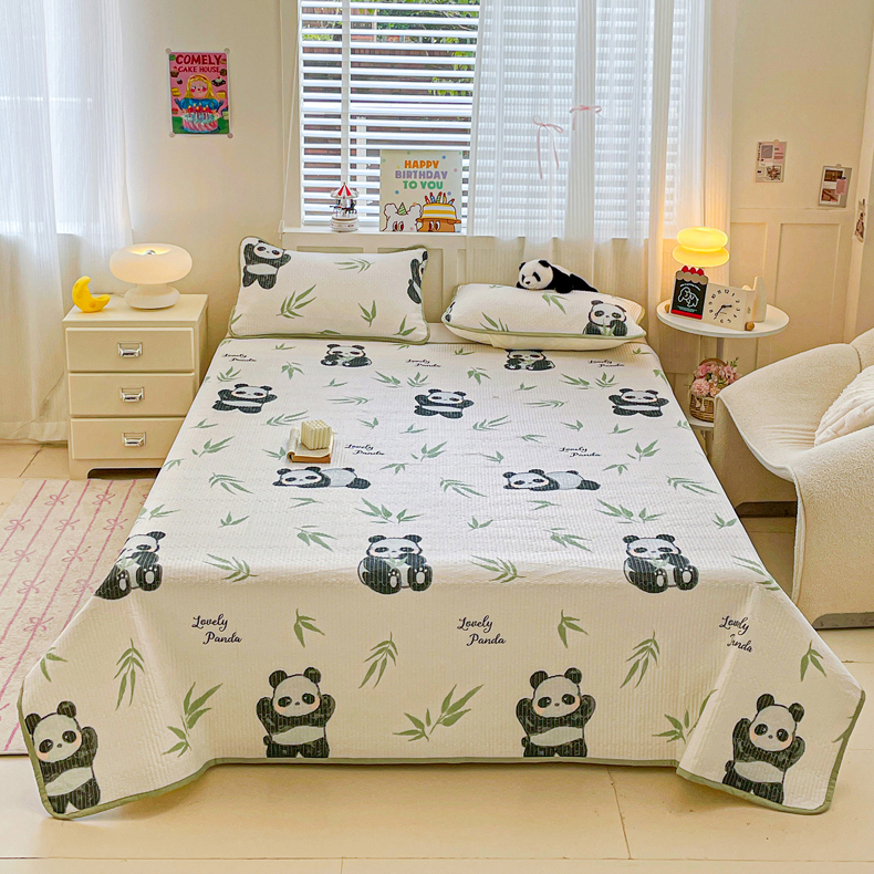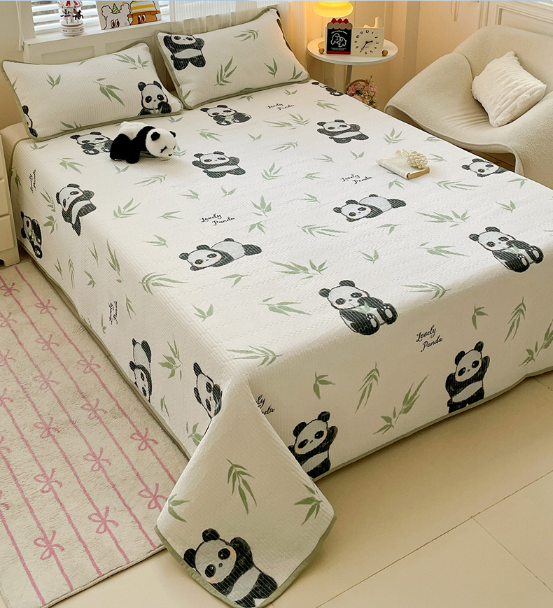 富馨莱 2025春夏新款纯棉夹棉单床盖床盖单件薄床垫 熊猫团子