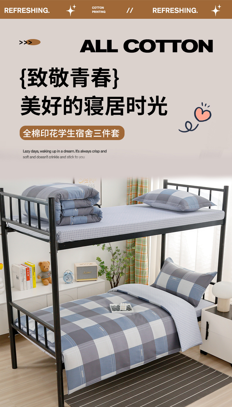当前位置: 91家纺网 > 商品网购 > 床品套件 > 四件套 > 全棉普通四件套 > 乐旗家纺 2025新款13372全棉床笠款学生宿舍三件套六件套多件套 莫斯格