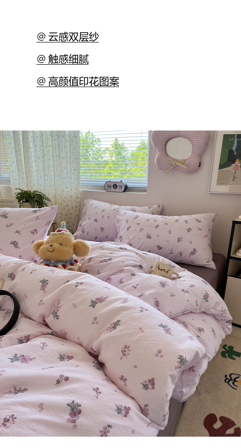 当前位置: 91家纺网 > 商品网购 > 床品套件 > 四件套 > 其它四件套 > 彩韵家纺 2025新款超柔云感m印花双层纱四件套 紫气葡萄