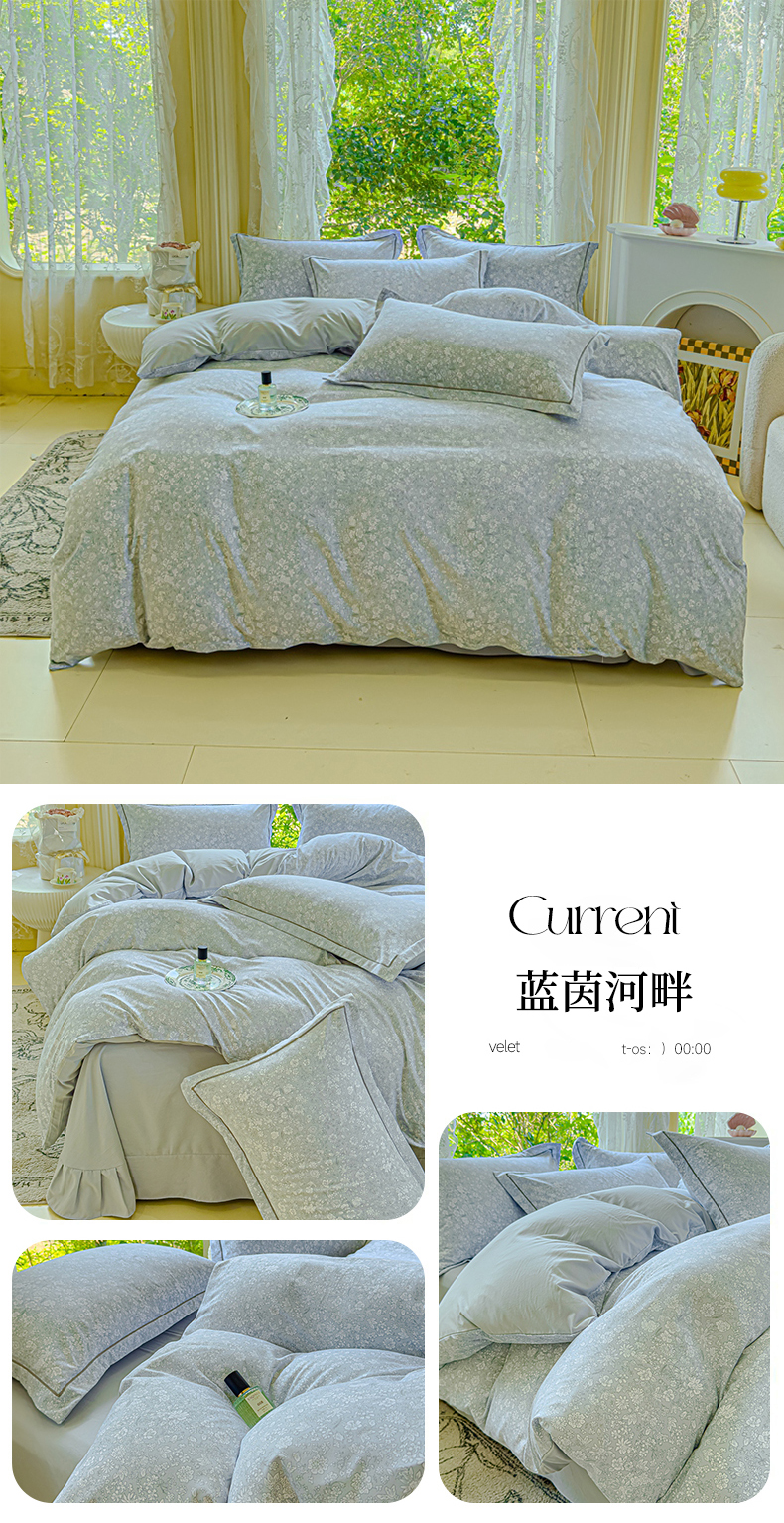 可思家纺 2025新款云柔棉四件套 蓝茵河畔