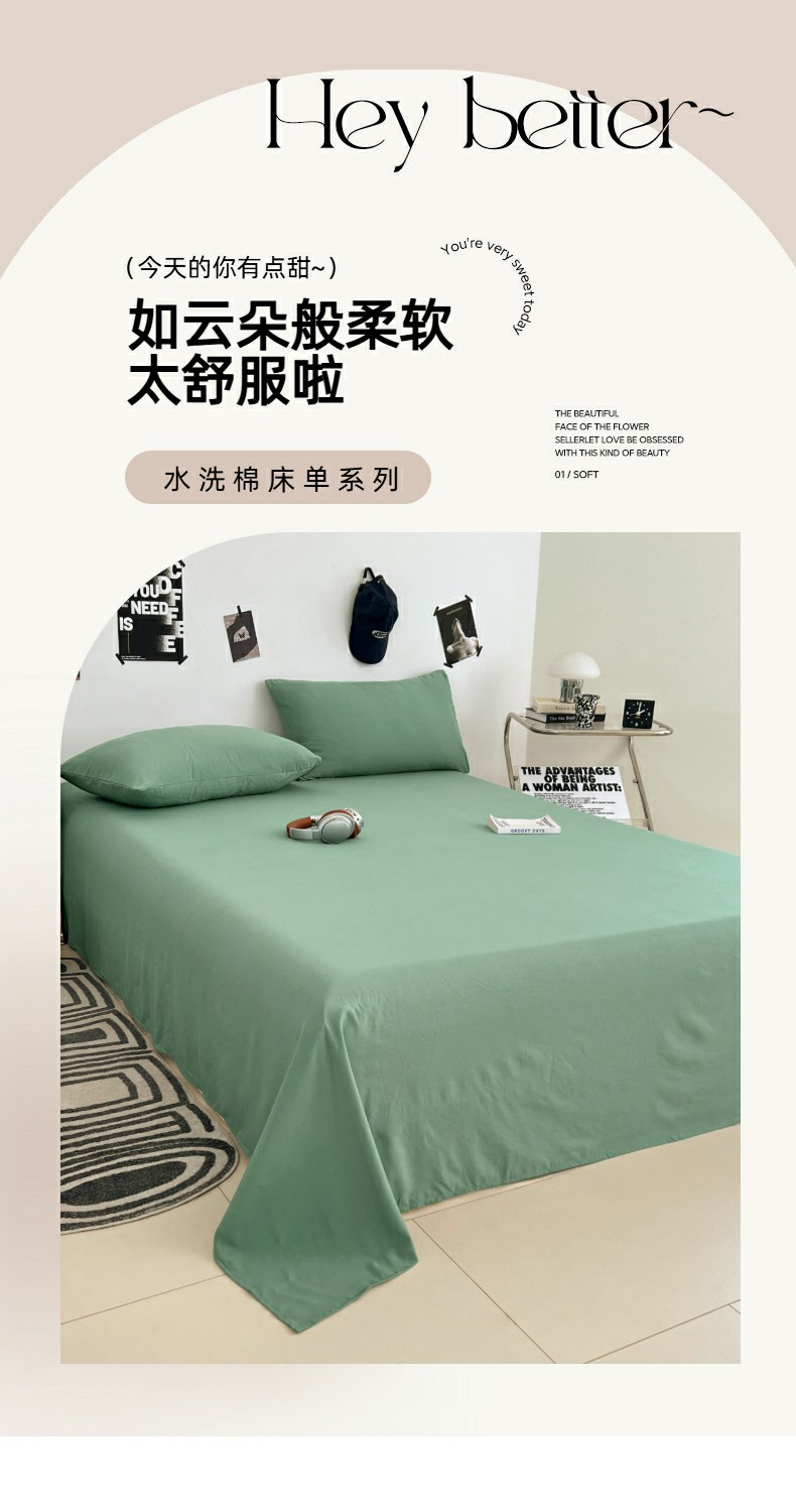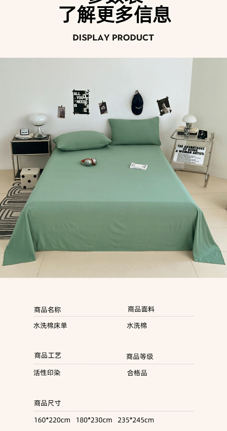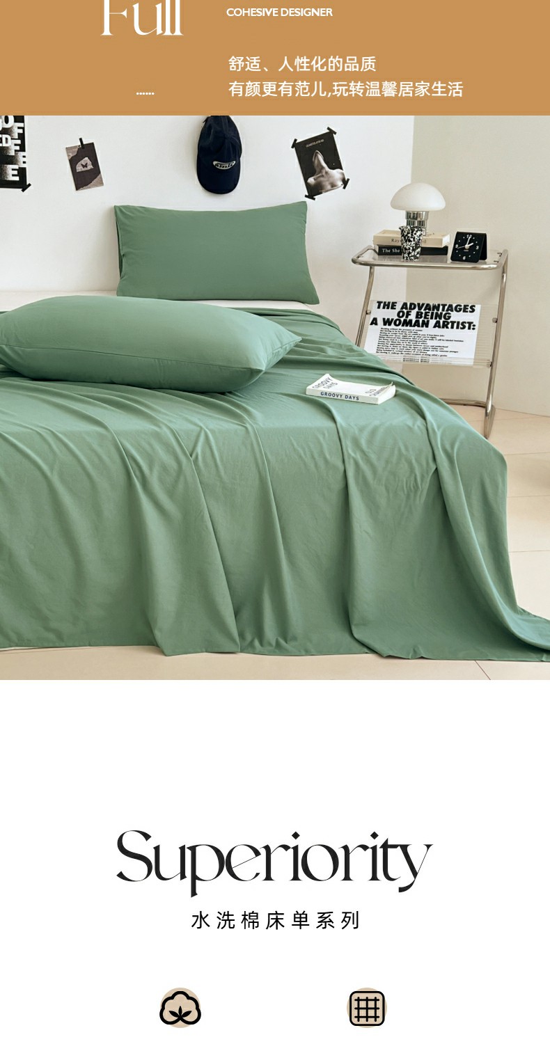 优尚佳生活馆 2025新款亲肤水洗棉纯色单品床单 麦苗绿