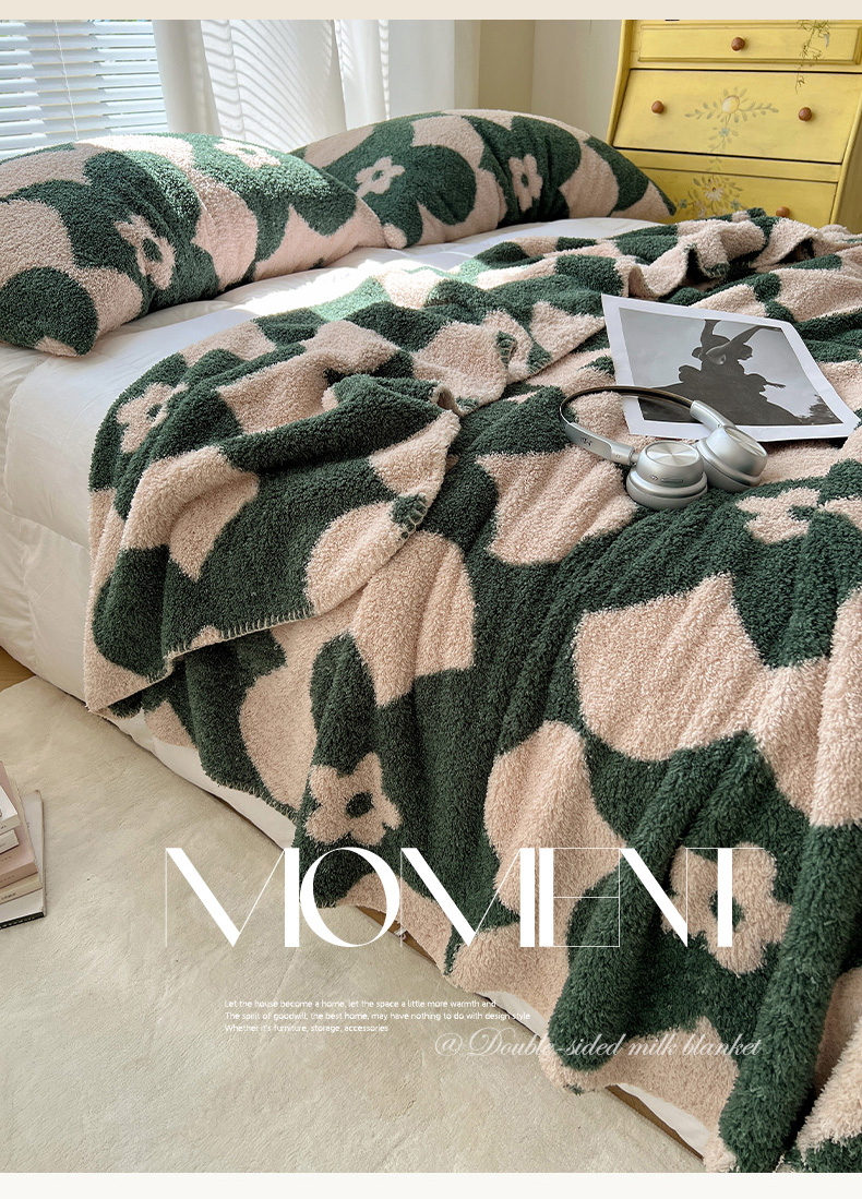 舒隅家纺 A类高级感半边绒三角针毛毯毯子 花墙