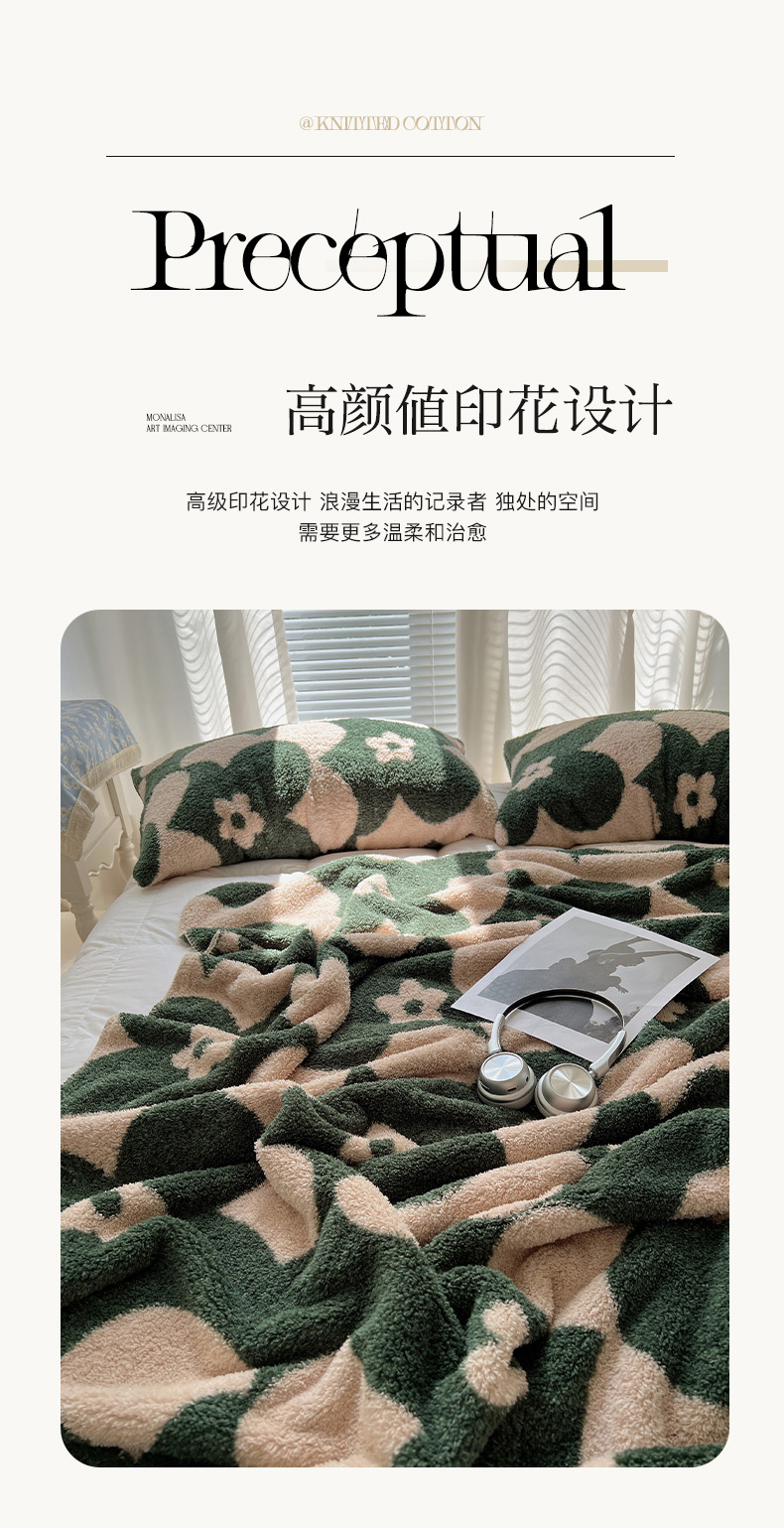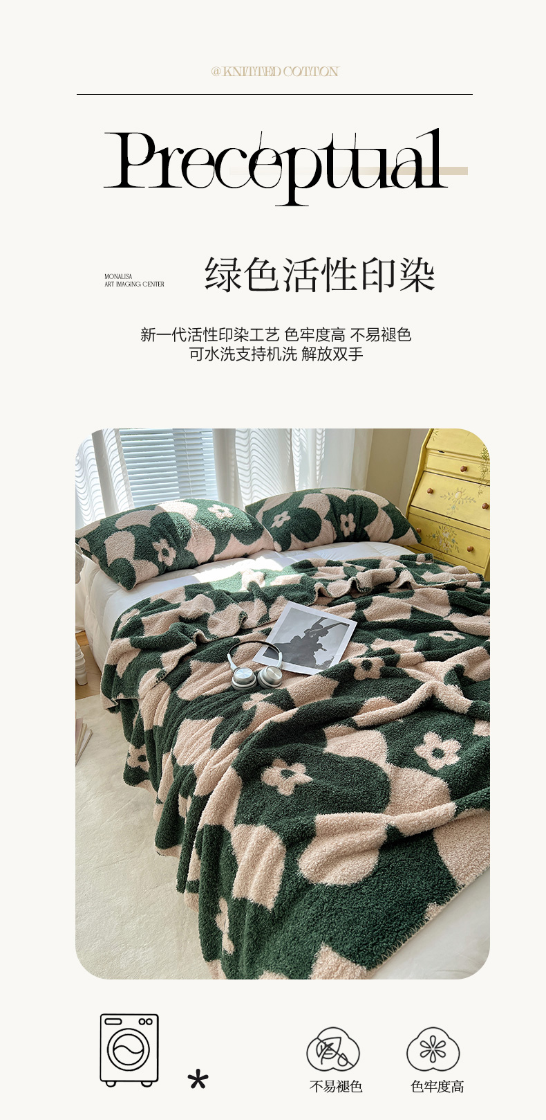 商品名称:舒隅家纺 A类高级感半边绒三角针毛毯毯子 花墙